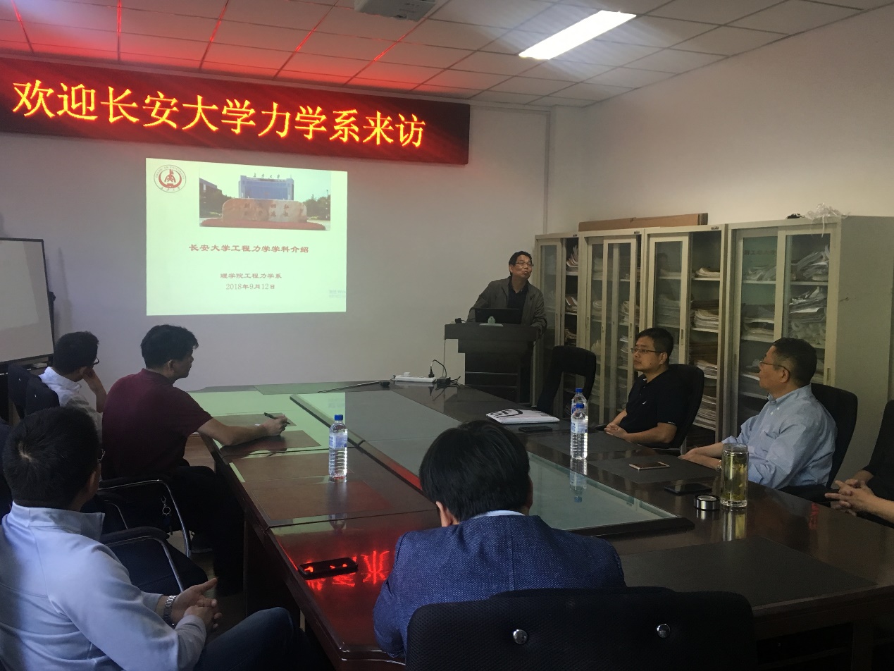 9月18日上午,长安大学理学院工程力学系主任张宏教授率队访问我院力学系。力学系主任左文杰教授、孟广伟教授、宫赫教授等接待了来访人员。会上,双方就力学专业培养方案、教学大纲、教学模式、科研方向等方面深入交换意见。长安大学将在优秀研究生生源推荐、博士毕业生招聘方面支持吉林大学力学学科的发展。会后,大家参观了工程力学实验室。