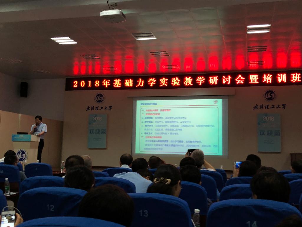 根据教育部办公厅关于开展示范性虚拟仿真实验教学项目建设的通知,以提高学生实践能力和创新精神为核心,以现代信息技术为依托,建设示范性虚拟仿真实验教学项目,推动高校积极探索线上线下教学相结合的个性化、智能化、泛在化实验教学新模式,支撑高等教育教学质量全面提高。于2018年7月29-31日在武汉理工大学召开主题为“融合创新进一步提高力学实验教学质量”的研讨会暨培训班,会上对虚拟仿真、虚实结合等多种创新的力学实验教学手段进行交流研讨,同时对第十一届全国周培源大学生力学竞赛基础力学实验竞赛进行研讨与总结,并对近两年来的力学实验教学改革与创新性实验开发方面的成果进行交流推广,以进一步提高基础力学实验的教学质量。