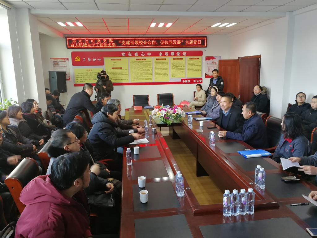 2019年1月8日,新葡的京集团8814机械电子工程系教工党支部党员及教师代表前往吉林省东元精密机械有限公司,与东元公司党支部携手开展“党建引领校企合作、促共同发展”主题党日活动。
