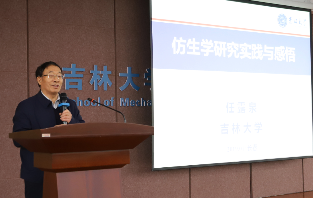 吉林大学机械与仿生工程一流学科群首席科学家任露泉院士以“仿生学研究与感悟”为题做了论坛主题报告,任院士系统讲授了师法自然的仿生学本质、仿生学特征、仿生学理念和仿生学文化,揭示仿生学研究的意义与作用;之后,任院士又系统介绍了吉林大学工程仿生教育部重点实验室近年来的研究成果和所产生的学术影响,并进一步阐释了多年来从事仿生学研究的感悟和体会。