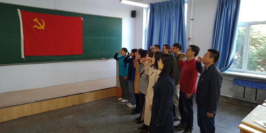 在支部书记闫冠教授的带领下,全体党员神情庄重,右拳高擎,面对鲜红的党旗郑重宣誓,重温入党时的思想激情和奋斗追求,回顾入党宣誓时的庄严承诺和坚定决心,激励同志们持续增强党性意识,永葆政治本色,以更加饱满的热情,争做教书育人模范。