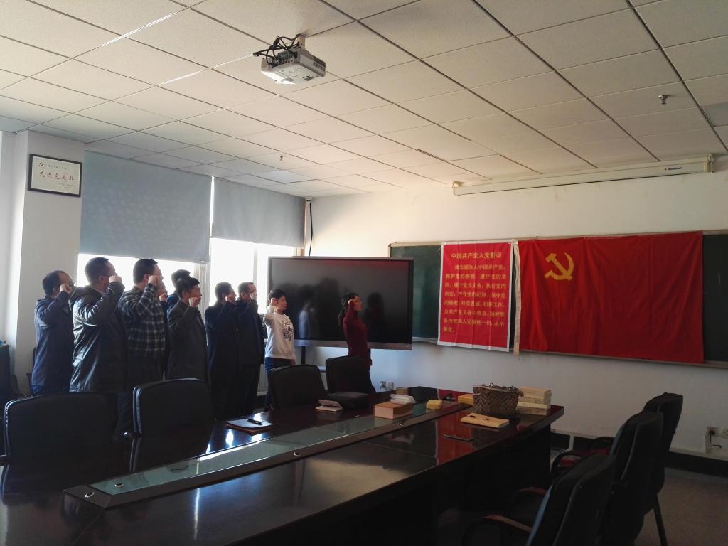 面对鲜红的党旗,系支部书记程亚兵教授领誓,全体党员神情庄重,举起右手,握紧拳头,庄严宣誓:“我志愿加入中国共产党,拥护党的纲领,遵守党的章程,履行党员义务,执行党的决定,严守党的纪律,保守党的秘密,对党忠诚,积极工作,为共产主义奋斗终身,随时准备为党和人民牺牲一切,永不叛党。”