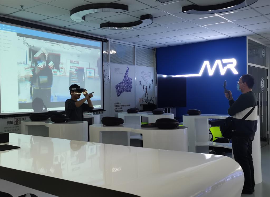 随后,机械XR梦工场的王志琼老师、刘津彤老师和刘继明老师分别对虚拟仿真实验教学中心的VR虚拟现实设备、AR增加现实设备和MR混合现实设备向同学做了直播展示,并鼓励大家拓展知识背景,踊跃报名参加机械XR梦工场的活动。