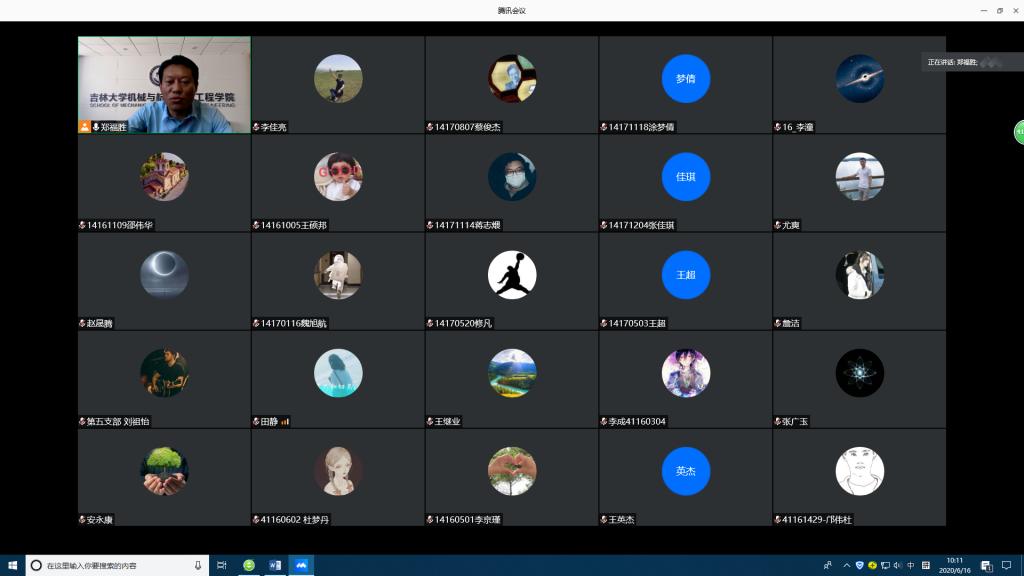 本次党课以“不忘初心,牢记使命,争做黄大年式的共产党员”为主题,重温了《习近平总书记对黄大年同志先进事迹作出重要指示》,讲述了黄大年同志的主要事迹,并对黄大年精神进行了解读,同时传达了《中共吉林大学第十四届委员会第十三次全体会议决议》的相关精神。郑福胜老师从无悔的壮丽人生、卓越的战略视野、真挚的家国情怀以及黄大年同志留下的宝贵精神财富四方面,回顾了黄大年同志的一生。他倡导同学们以黄大年同志为榜样,学习他心有大我、至诚报国的爱国情怀,学习他教书育人、敢为人先的敬业精神,学习他淡泊名利、甘于奉献的高尚情操,把爱国之情、报国之志融入祖国改革发展的伟大事业之中。他强调,学生党员在日常学习工作生活中,更要以身作则,突出表率作用,既有宽广胸怀,又有责任担当。最后,郑老师传达了学校关于毕业生返校的相关要求,希望毕业生党员加强防控意识,按照学校的相关要求,在返校和离校工作中起到先锋模范作用。