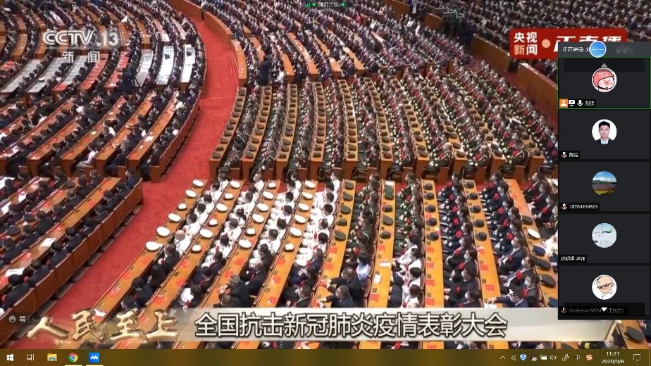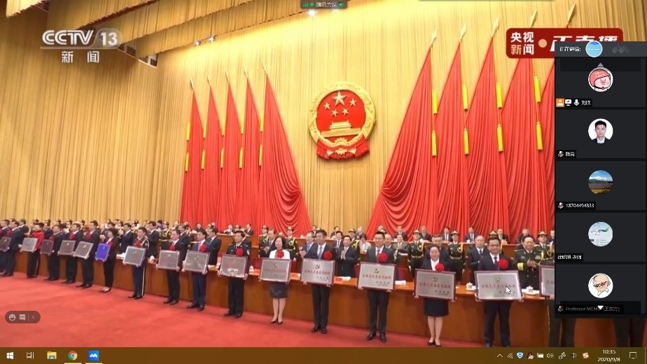 2020年9月8日上午10点,全国抗击新冠肺炎疫情表彰大会在人民大会堂隆重举行,机械制造及自动化系教工党支部组织全体党员观看表彰大会直播盛况。