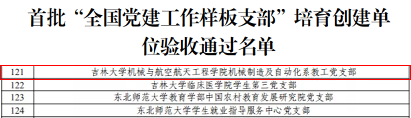 期间,该支部党建工作取得了丰硕成果,先后被评为吉林大学优秀党支部、吉林大学扶贫工作先进基层党支部,支部党员多人被评为吉林大学优秀党员、吉林大学优秀党务工作者、“吉林省最美家庭标兵”等荣誉称号。支部党员负责的《机电传动控制》获批吉林省课程思政“学科育人示范课程”项目,《机械制造技术基础》和《机械工程测试技术》获批吉林大学课程思政“学科育人示范课程”项目,《科学道德与学术规范》《试验设计理论及其应用》《现代制造》获批吉林大学研究生“课程思政”示范课程建设立项。发表党建论文2篇。