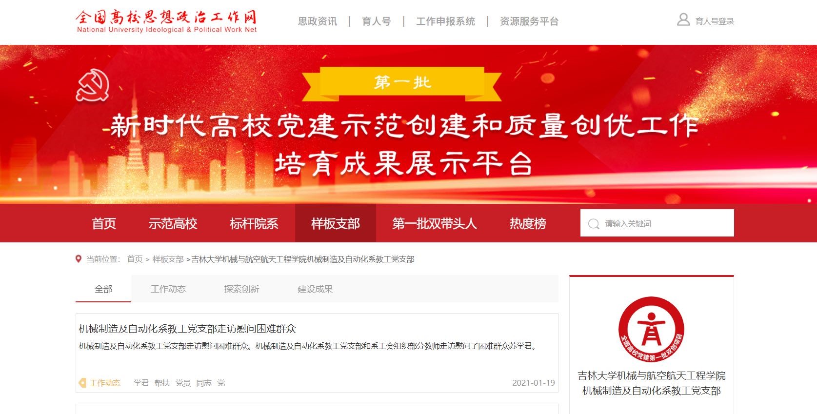 2021年1月,我院机械制造及自动化系教工党支部顺利通过首批“全国党建工作样板支部”培育创建验收。