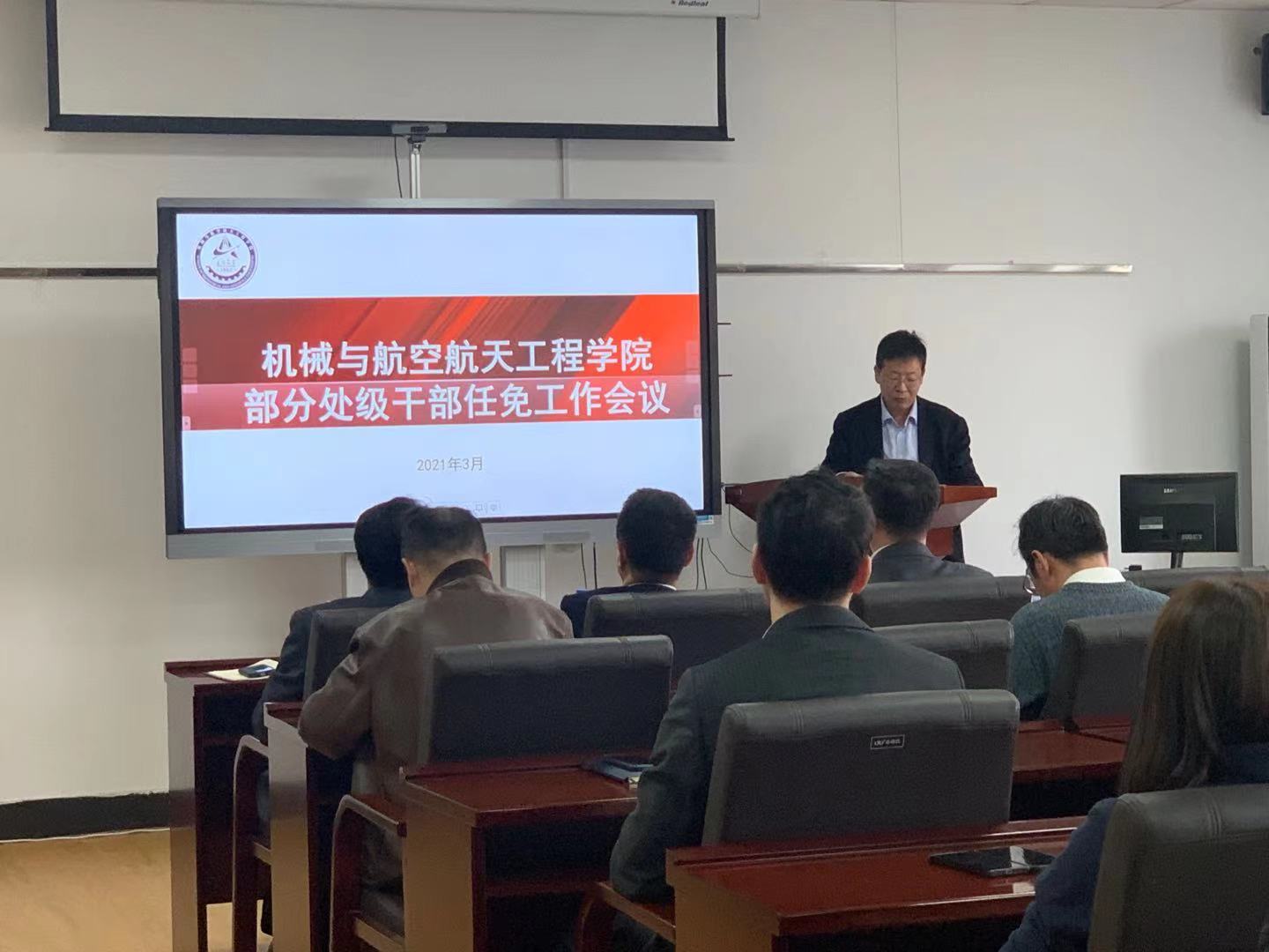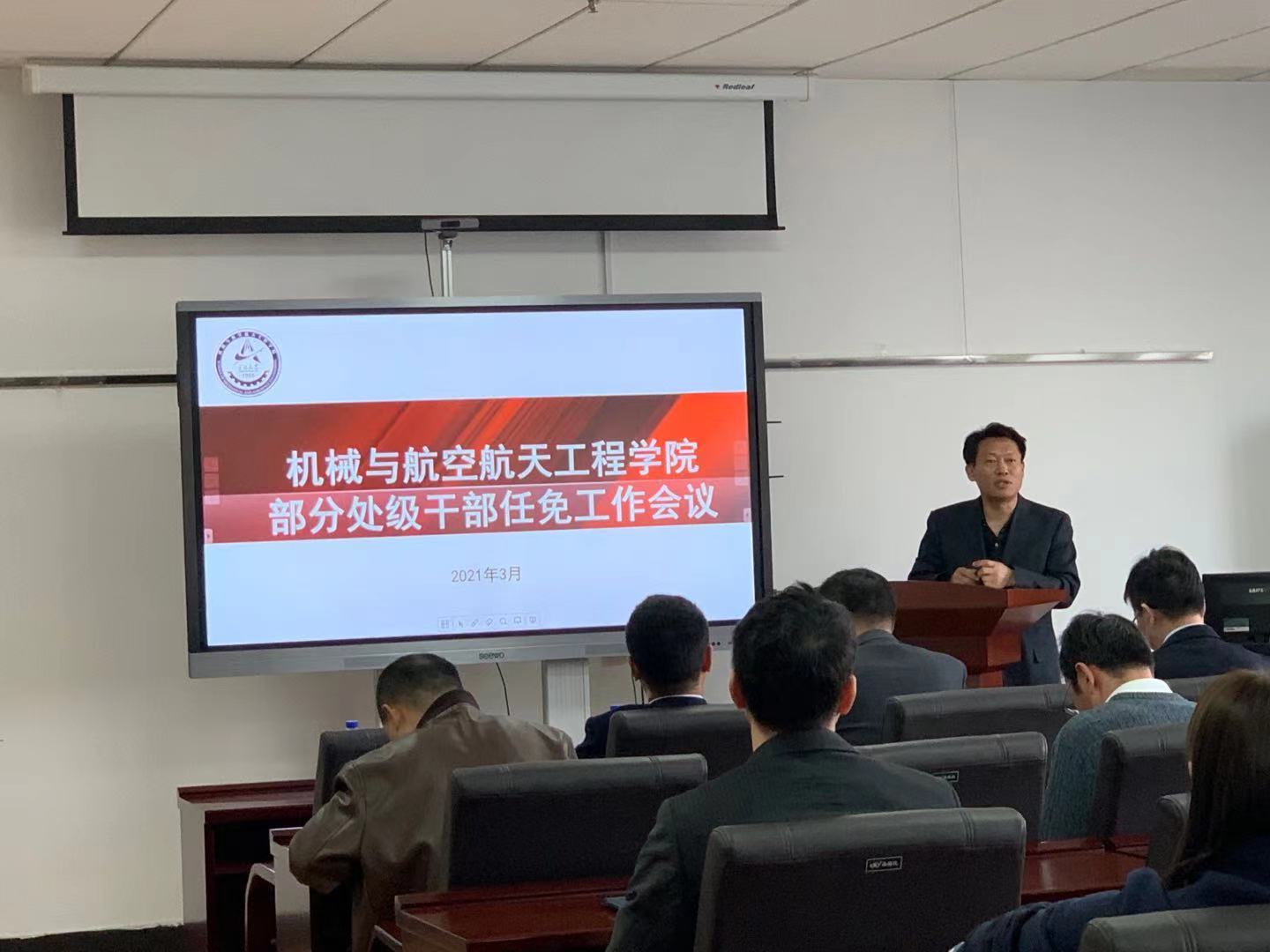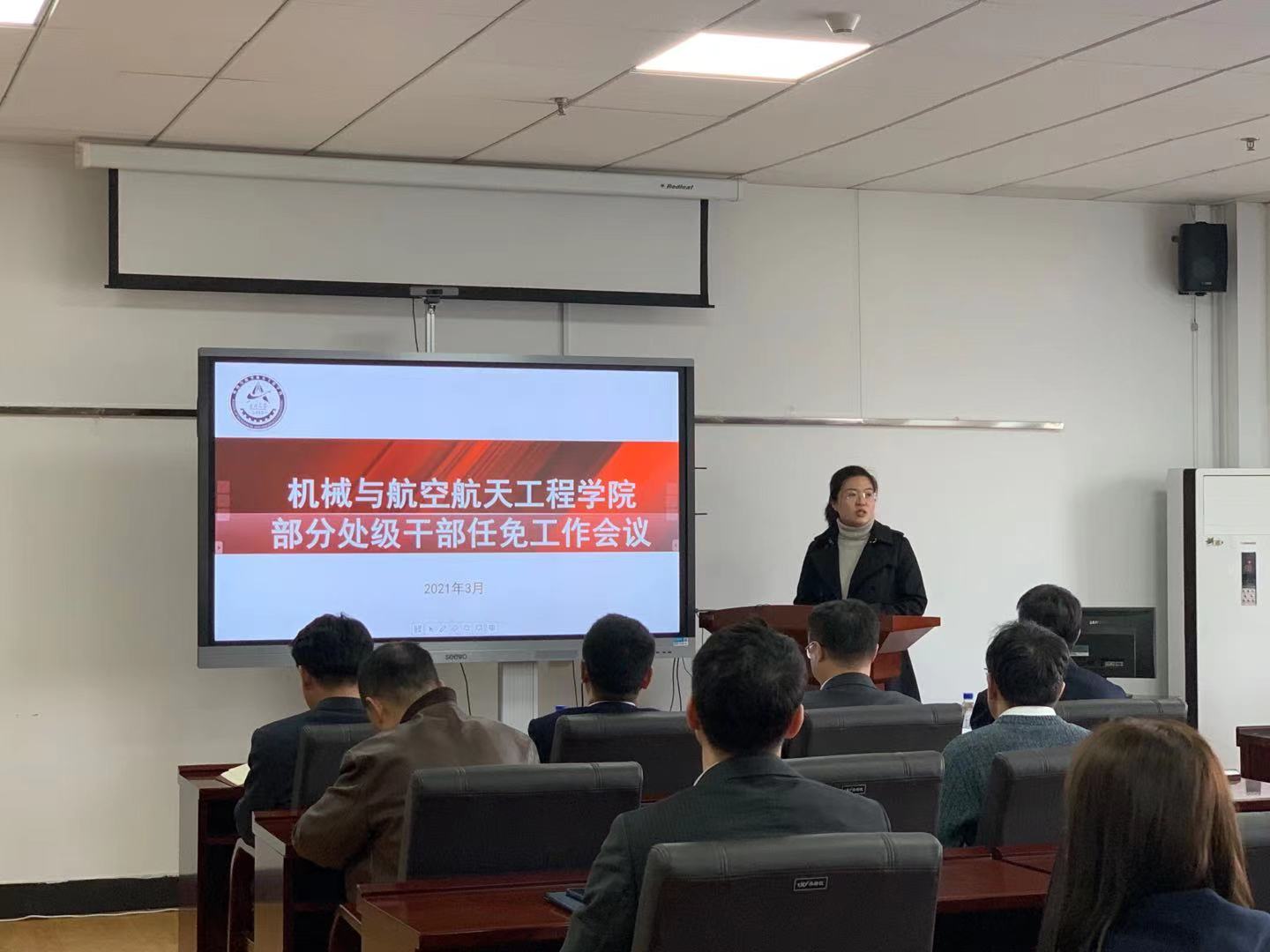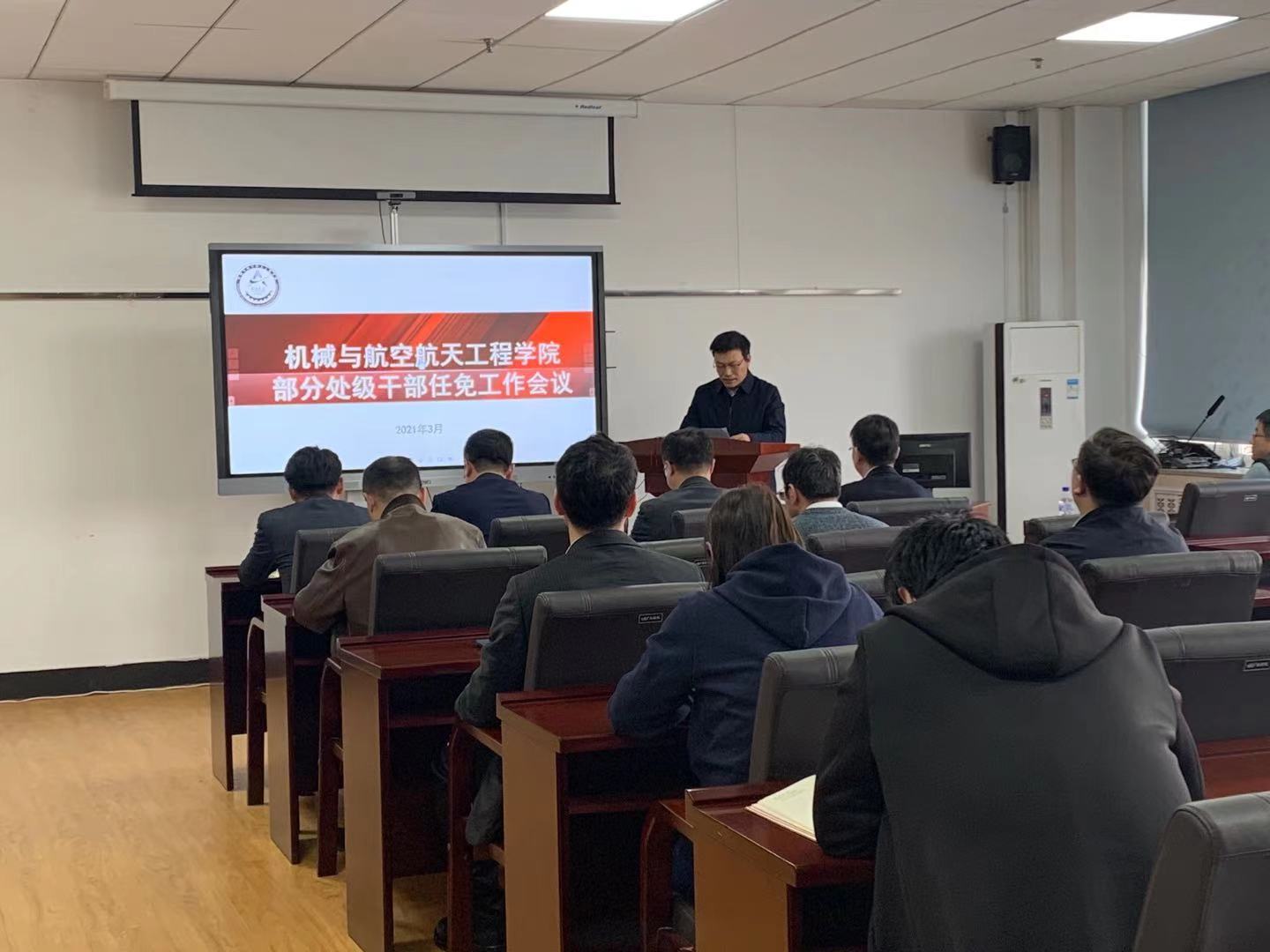 2021年3月31日下午3点,新葡的京集团8814部分处级干部任免工作会议在机械馆529会议室召开。吉林大学党委常委、副校长赵宏伟,党委组织部部长巩英春出席会议,会议由学院院长周晓勤主持。学院领导班子成员、党委委员、纪委委员、学院学术委员会主任委员、学位评定分委员会主席、教学委员会主任委员,各系、行政科室主要负责人,教工党支部书记等参加会议。
