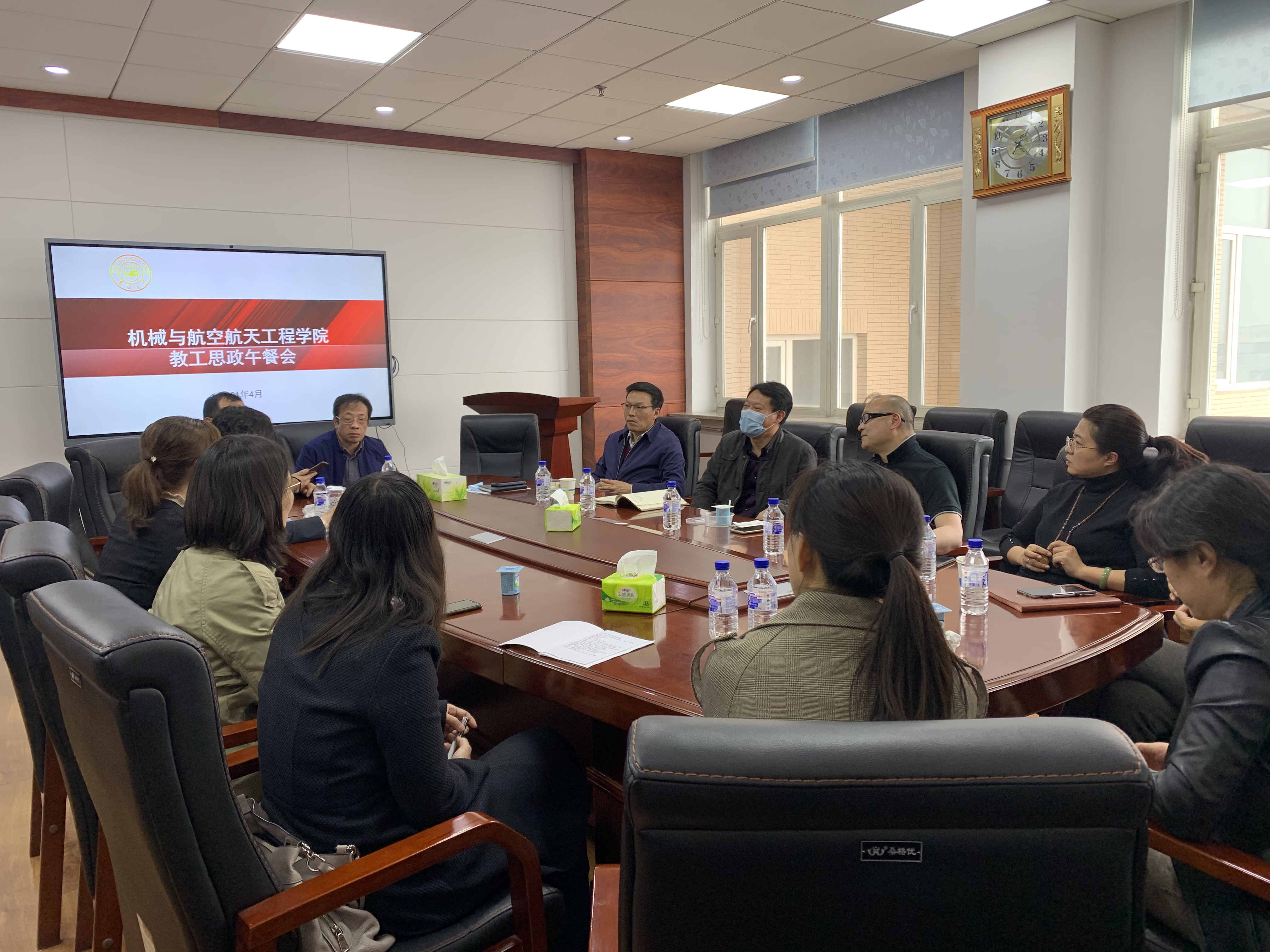 4月23日中午,我院在机械馆517会议室举办教工思政午餐会。学院党委书记郑福胜、党委副书记黄莹、党委副书记兼副院长马艳秋、副院长马研、党委委员程钺、党委委员王柏及10余名教职工代表参加会议。会议由党委副书记兼副院长马艳秋主持。