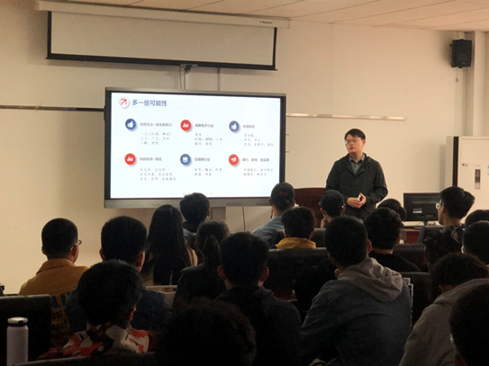 讲座主要根据郭松楠、李世超两位同学的亲身经历,围绕简历制作及公务员招录考试展开。郭松楠为同学们简要介绍了企业与机关事业单位工作内容、形式等方面的区别,着重介绍了参加选调生考试的相关事项,并对考取公务员的面试技巧分享了自己独到的见解,使同学们受益良多。李世超同学讲解了针对不同的企业应如何制作简历,还分享了自己面试事业单位的相关经验,同时他鼓励同学们要多尝试不同的企业面试,在实战中积累经验,同学们备受鼓舞,增强了信心。