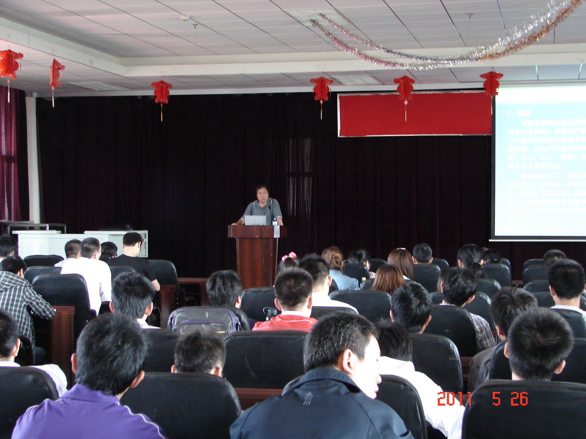2011年5月26日上午9:00,机械学院邀请北方重工集团副总经理、总工程师、我校兼职教授赵凯军在南岭校区机械材料馆八楼学术报告厅做了一场题为《从我国装备制造业发展前景,看我们的历史机遇和责任》的学术报告会,报告会由机械学院党委书记王国强教授主持。