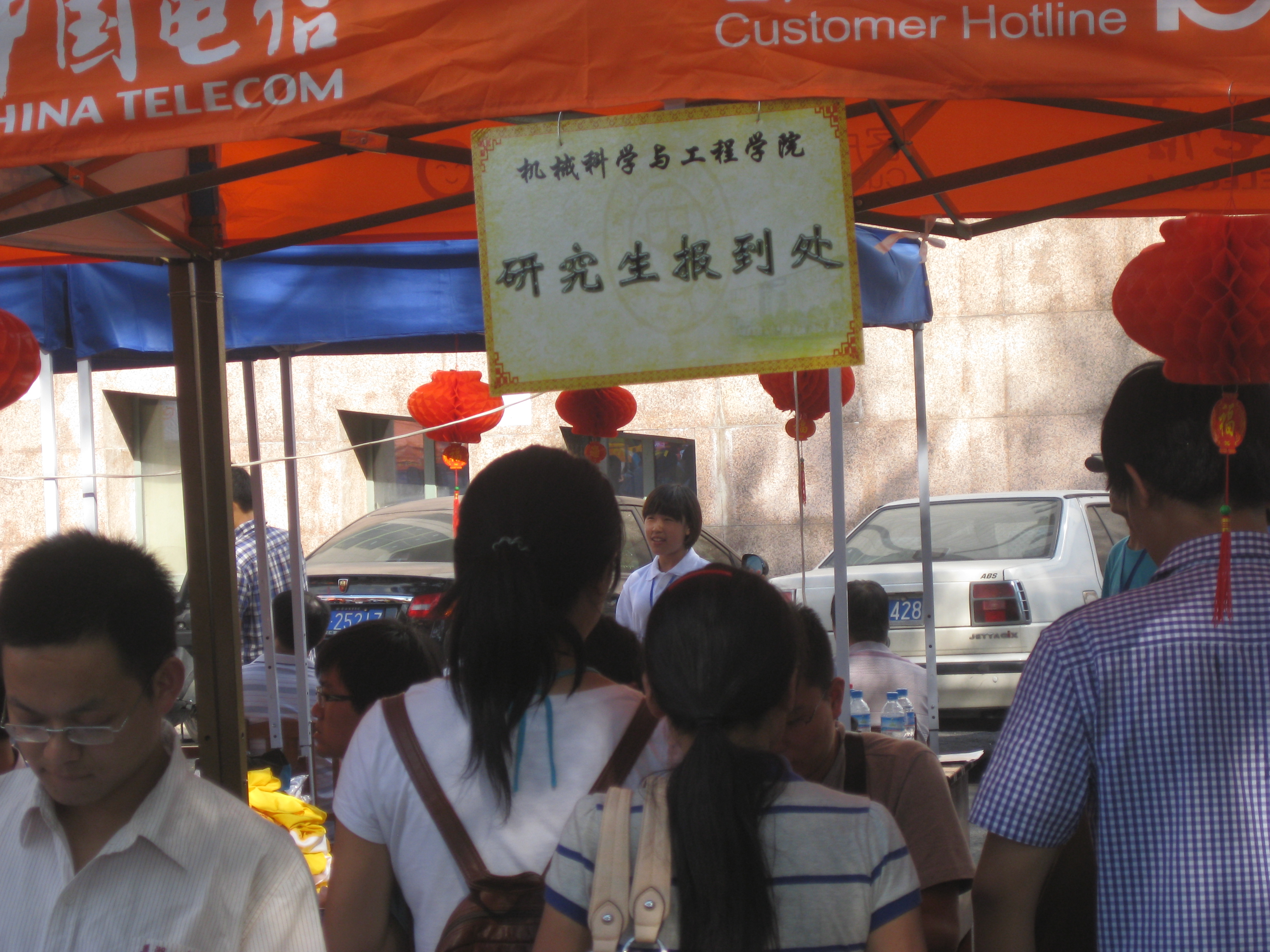 经过前期紧张而充分的准备工作,2011年8月26日,作为吉林大学2011年研究生迎新工作开展首日,机械学院研究生会各相关部门工作人员便已着手搭建迎新报到帐篷及准备迎新所需的相关设施,迎接来自五湖四海的2011级新生。机械学院党委副书记郑福胜老师、研究生办公室主任隋忠睿老师、巴特老师等到现场检查迎新情况,给予工作人员极大的鼓舞。