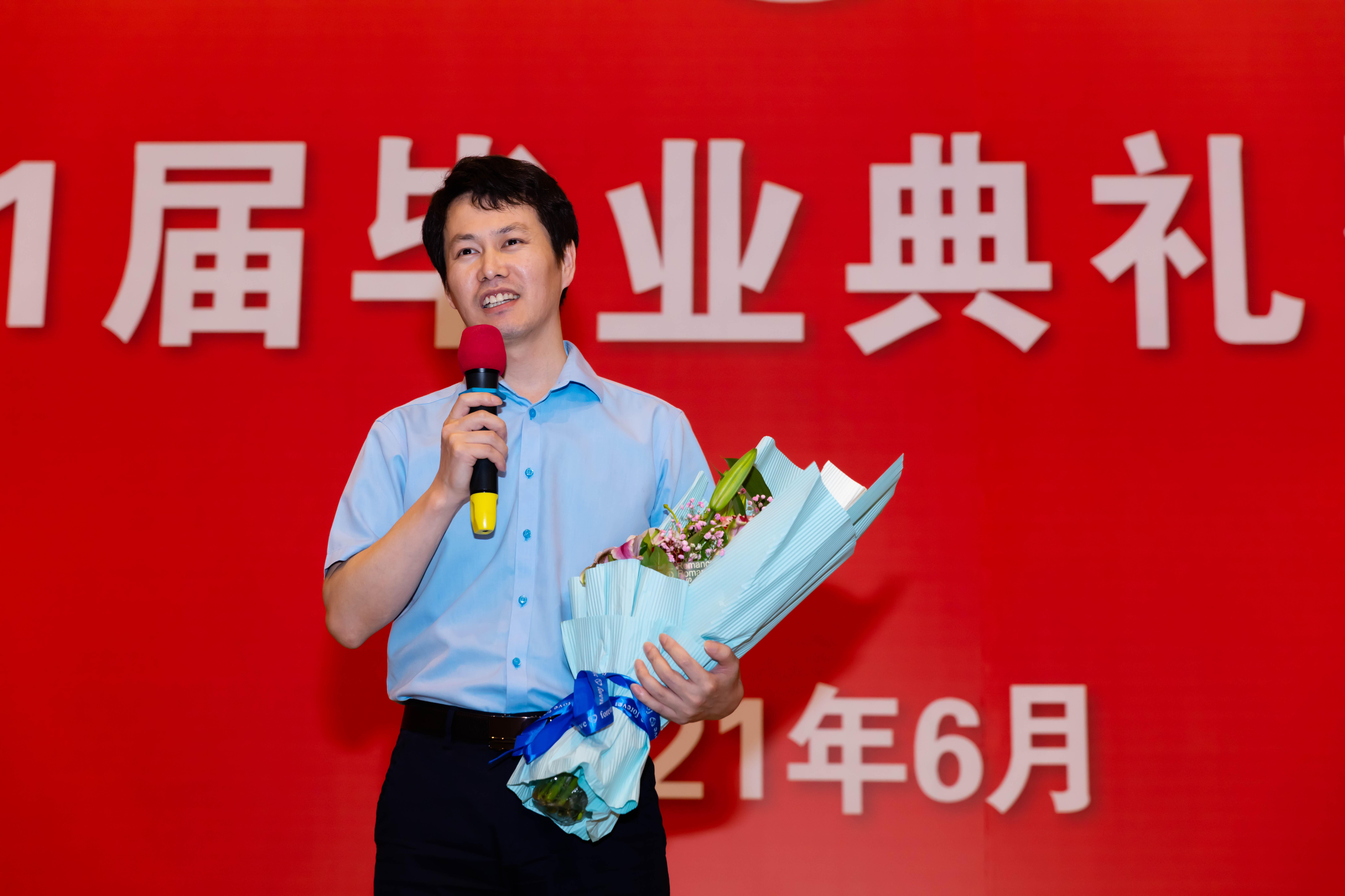 毕业生代表为校区职能部门员工、学生喜欢的教师们献上花束,既为他们大学四年里的悉心教导而感激,也为他们在学校生活中的亲切关怀而感恩。