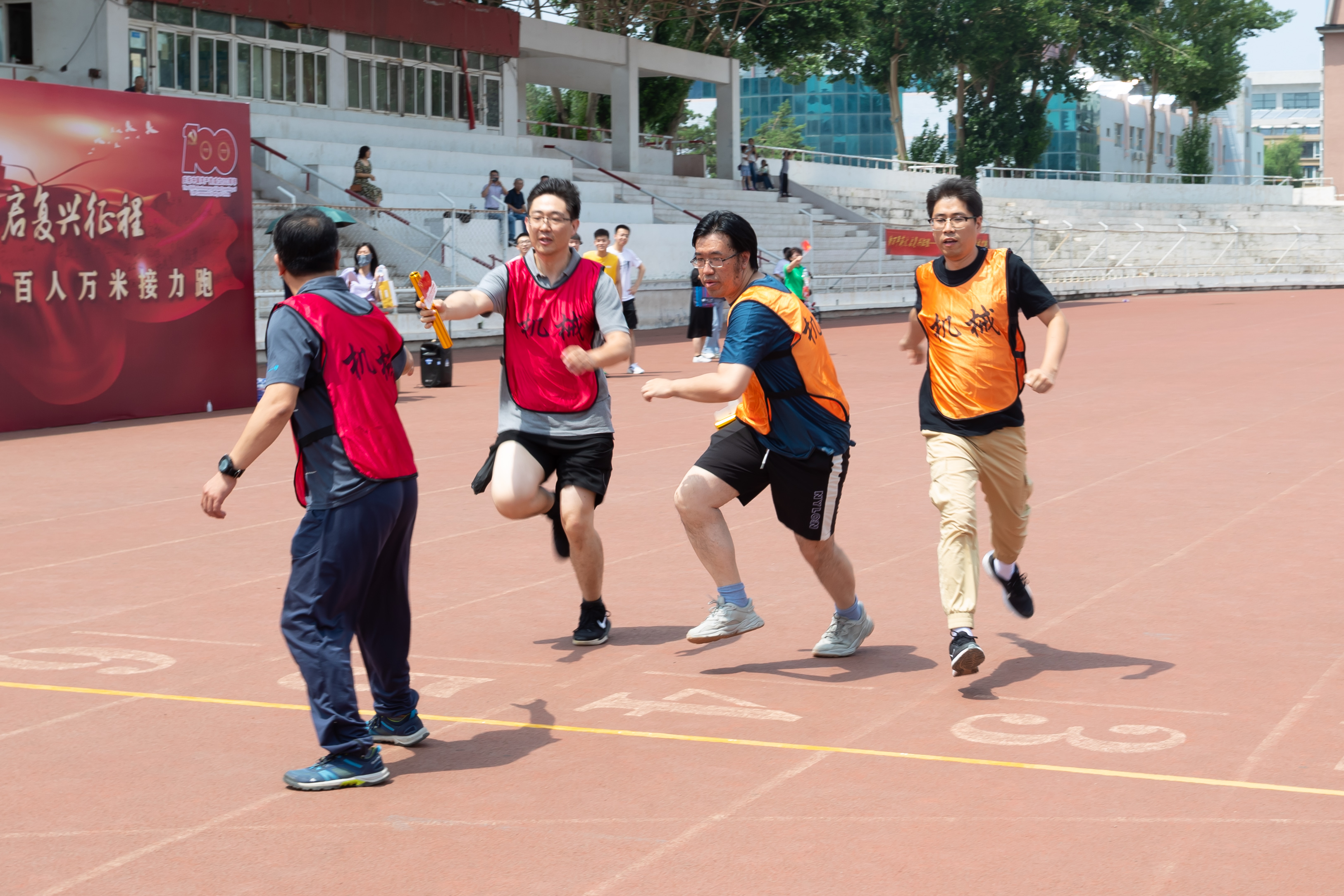 接力跑结束后,学院党委书记郑福胜向积极参加活动的师生们表示感谢,同时指出,中国共产党走过的一百年,是矢志践行初心使命的一百年,是筚路蓝缕奠基立业的一百年,更是创造辉煌开辟未来的一百年。今天以百人万米接力跑的方式迎接党的百年华诞就是激励广大师生以昂扬向上的姿态、充满激情的斗志,传递不变初心,接力复兴使命。希望全体师生,注意锻炼身体,保持身心健康,争当科教兴国的时代先锋,勇担民族复兴的伟大使命。