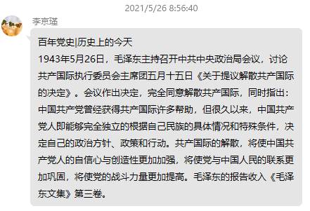 习近平总书记指出,历史是最好的教科书,也是最好的清醒剂。学习党史是共产党员的必修课,为营造学习党史的浓厚氛围,引导广大党员进一步坚定理想信念,提高党性修养,2021年5月17日以来,我院研究生党支部扎实开展“百年党史 历史上的今天”党史接力活动,不断把党史学习教育引向深入。