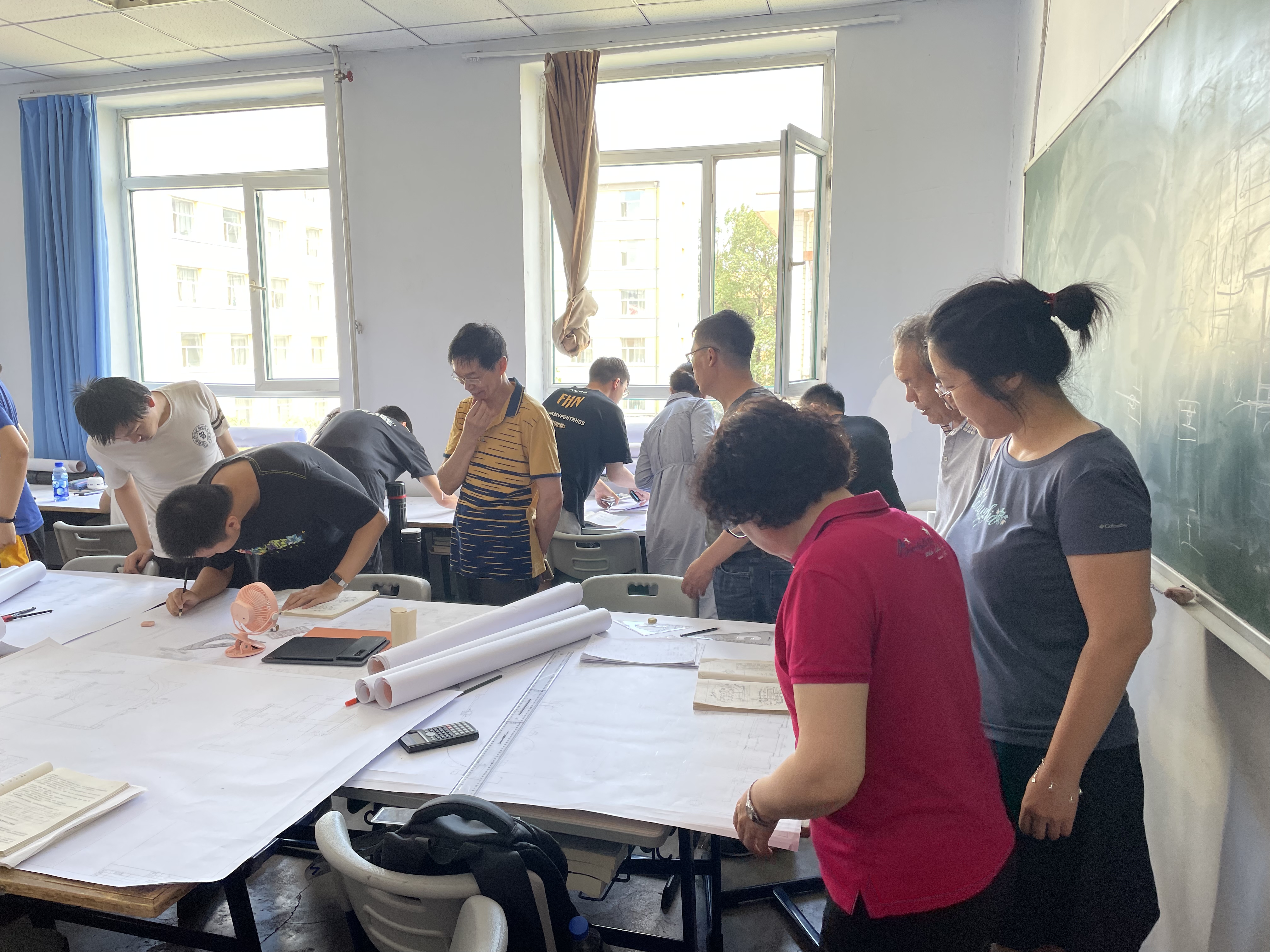 2021年7月5日上午,工程与计算机图学教研室全体教师到南岭校区第一教学楼进行了实地调研,了解机械设计实践环节中学生的工程制图综合应用能力情况与不足。期间详细听取了谭庆昌教授、王顺主任等任课教师对学生读图、看图实践能力的反馈,两个教研室老师就工程图学教学及与后续课程的衔接、工程实践能力的连续培养,进行了深入交流。