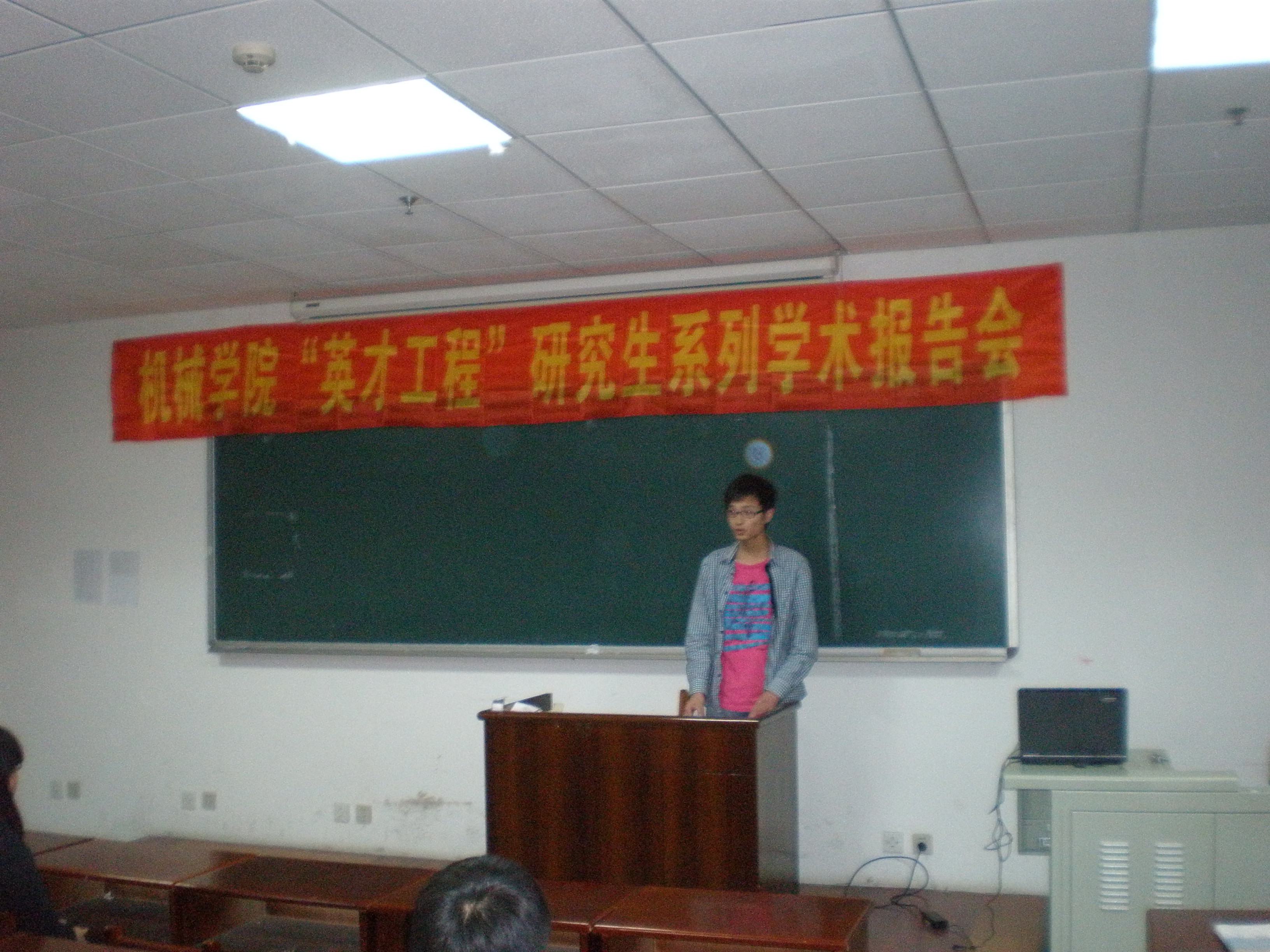 2012年5月10日晚6:30,英才工程系列学术活动之研究生学术报告会(第十三期)在逸夫机械材料馆529教室隆重举行。