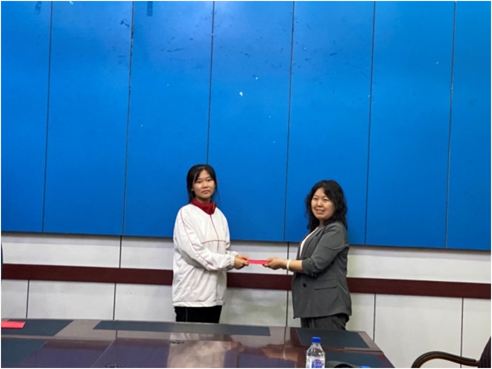 到达通榆一中后,老师们与学校捐资助学办的老师和获得资助的同学们进行了座谈。通榆一中的师生们表示捐资助学减轻了孩子们的经济压力,使他们能够更好地安心学习;机械制造及自动化系的老师们表达了对通榆一中同学们的关怀和期待。最后,教师代表们为获得资助的同学们颁发了助学金,同学们一致表示,一定会乐观面对生活,努力学习,奋力拼搏,争取更大的进步,绝不辜负吉林大学教师对自己的关爱和期望。