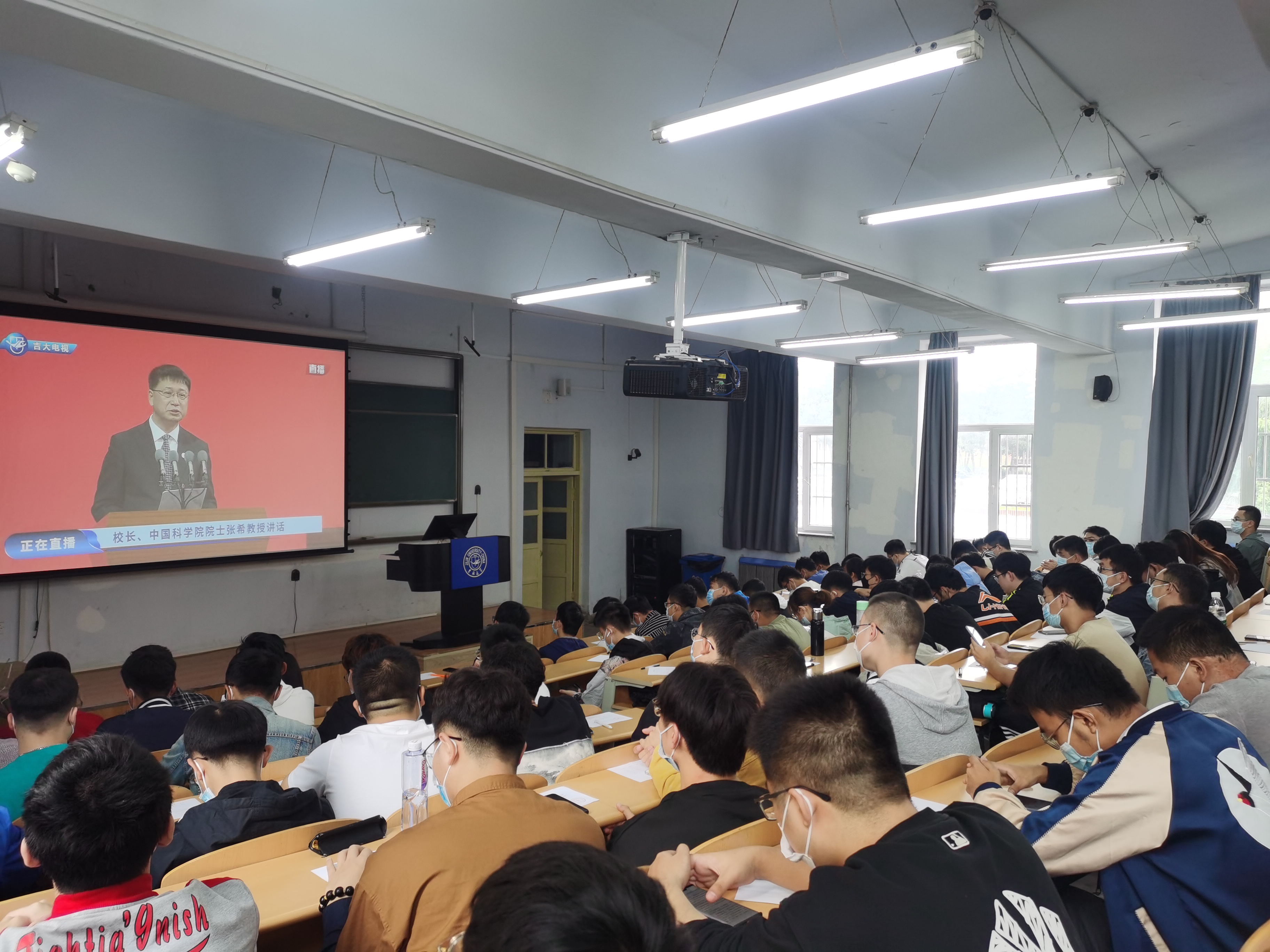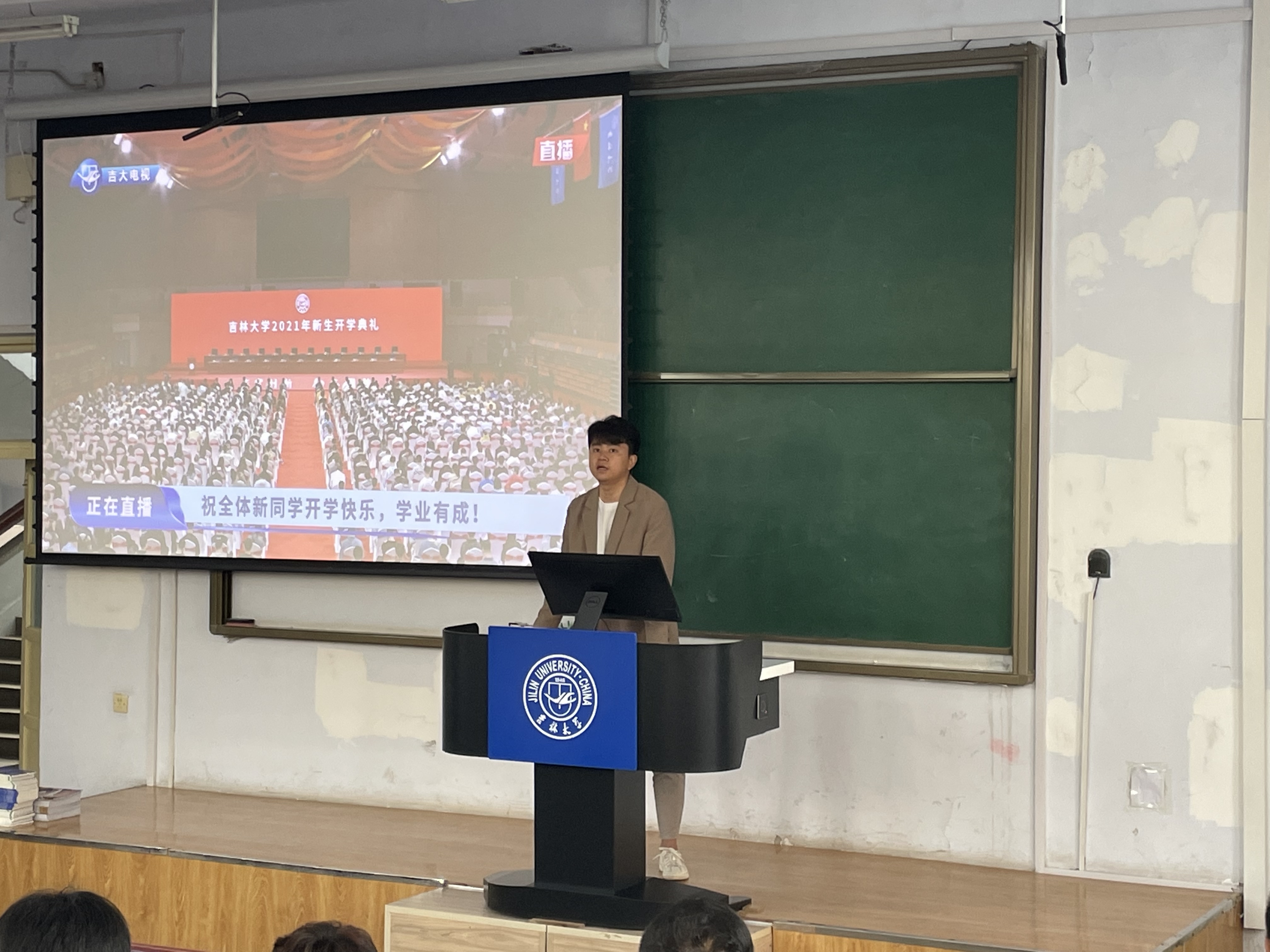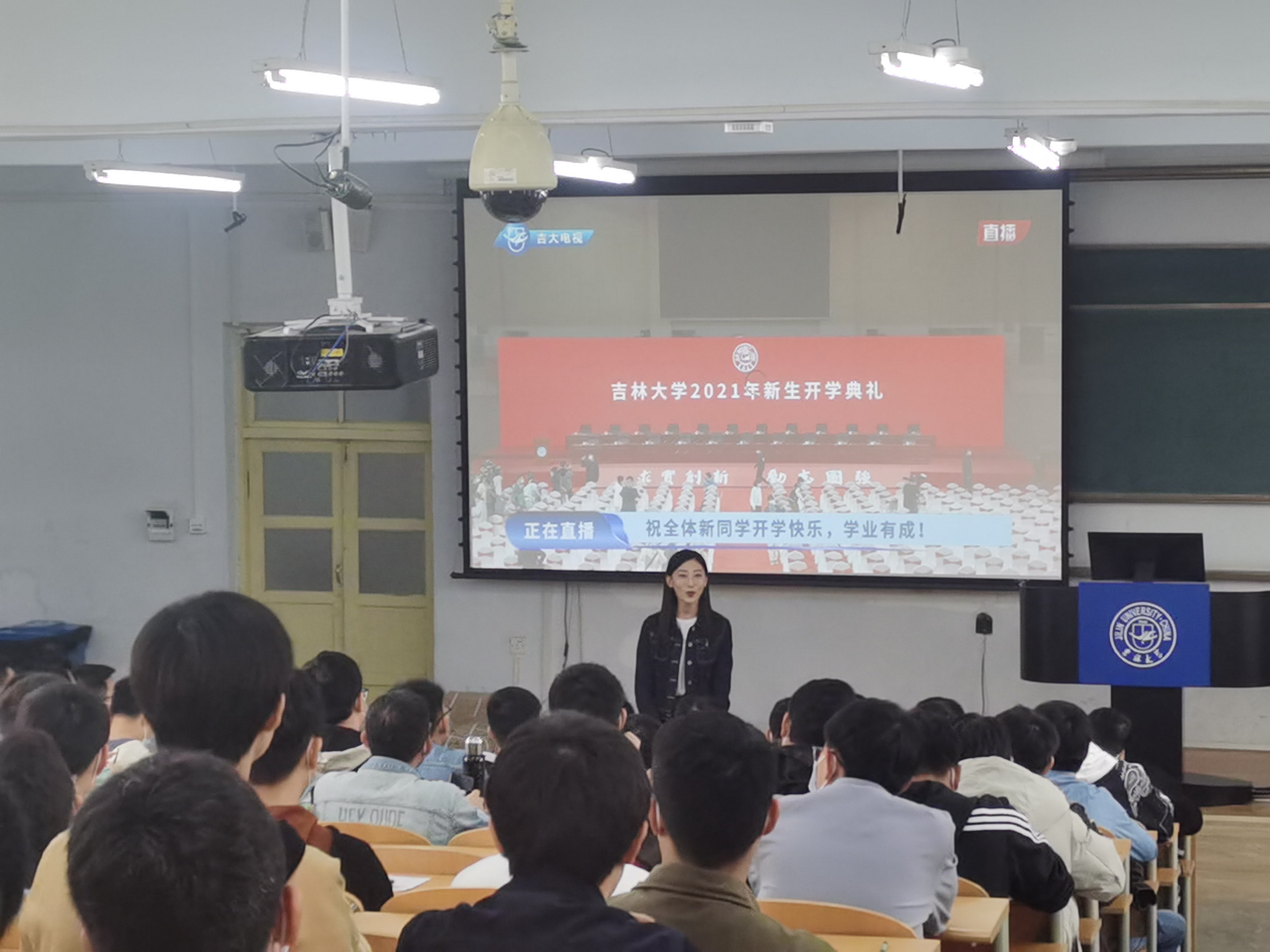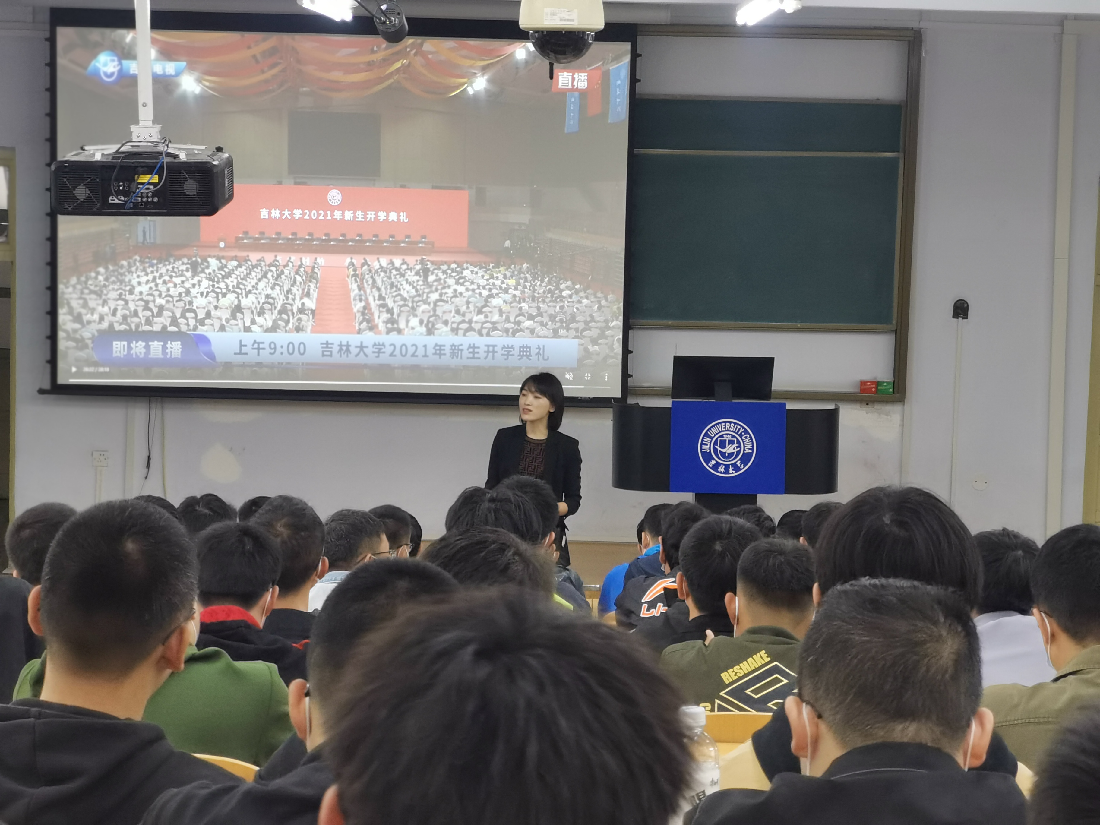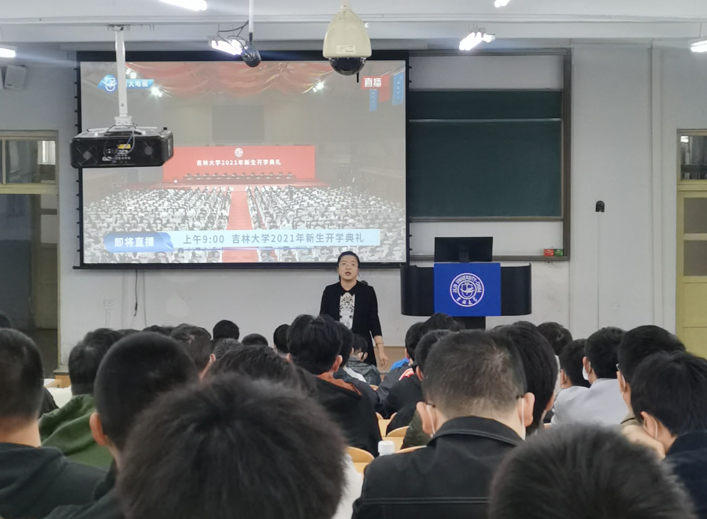 “白山黑水迎新秋,清晏粼粼映锦绣”。2021年9月28日上午,吉林大学2021年开学典礼在中心校区宋治平体育馆举行。新葡的京集团8814积极响应学校要求,在南岭校区第一教学楼102和202布置分会场,在严格遵守长春市及吉林大学近期疫情防控要求的前提下,组织学院全体研究生新生在线观看吉林大学2021年开学典礼。学院党委副书记黄莹、研究生办公室赵南、刘继娟、辅导员曲艺、张瑛与学生们共同观看。