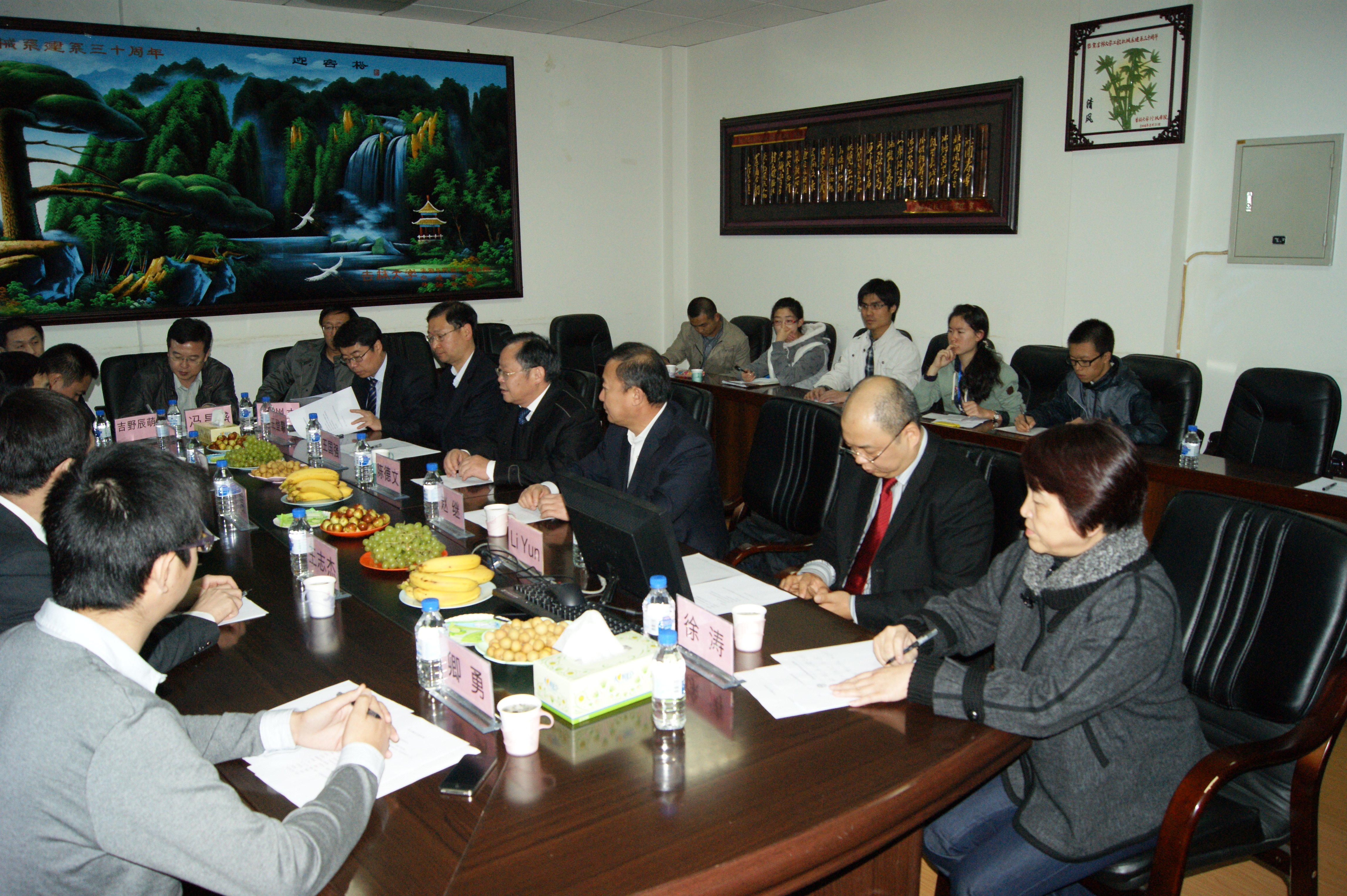 10月18日,受全国政协委员、机械学院博士生导师徐涛教授的邀请,重庆市政府邰展副秘书长,重庆市科委主任、中国工程院院士钟志华教授,重庆市大足区委副书记、区政府副区长王志杰等一行五人到吉林大学机械学院进行了高科技项目考察活动。吉林大学党委书记陈德文教授、常务副校长赵继教授、机械学院党委书记王国强教授、机械学院徐涛教授、机械学院兼职教授、联合国国际环境资源机械类专家Li yun博士及机械学院项目相关人员出席了本次座谈、交流,会议由常务副校长赵继教授主持。