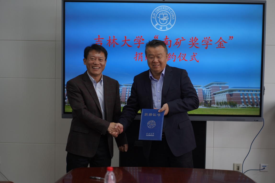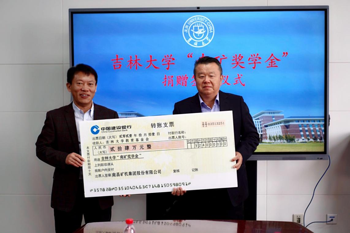 马艳秋首先代表学院对龚友良总裁一行的到来表示欢迎,对南昌矿机集团股份有限公司关爱教育的善行义举表示衷心的感谢。在双方的见证下,龚友良总裁与吉林大学校友和基金工作办公室副主任丁连涛签署了捐赠协议,龚友良总裁向学校赠送捐赠支票,郑福胜书记向龚友良总裁颁发捐赠证书。