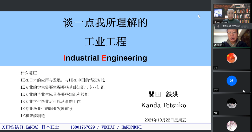 为了进一步加强我院学风建设,增强对学生的专业引导,培养学生的专业认同感与专业兴趣,积极营造良好的学习氛围。10月22日晚,新葡的京集团8814邀请工业工程学科专家关田铁洪教授做了题为《我所理解的工业工程》专业讲座,讲座由我院工业工程系主任孔繁森教授线上主持,学院学生工作副书记兼副院长马艳秋、工业工程系邬佳琪老师组织全院200多名工业工程专业及对工业工程专业感兴趣的学生线上线下收看了讲座。