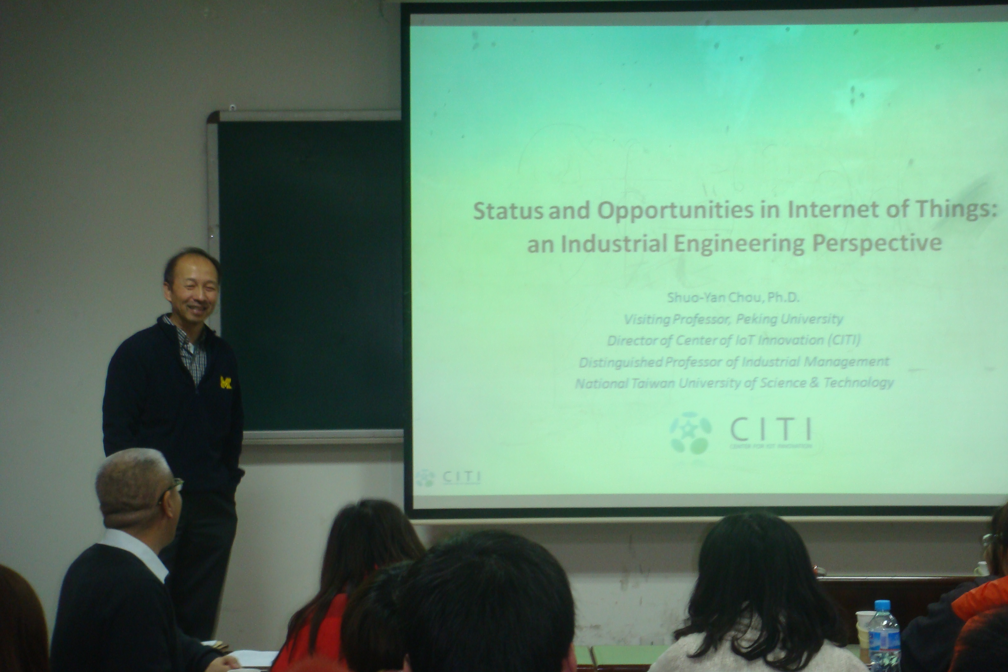 2012年11月11日下午1:30,应机械学院工业工程系系主任孔繁森教授的邀请,台湾科技大学物联网创新中心主任、北京大学客座教授、日本名古屋大学访问学者、中国工业工程学会理事周硕彦教授在南岭校区机械材料馆529室作了题为《Taiwan’s industry Development and Global Supply Chain Strategy——台湾产业发展及全球供应链策略》的学术报告。机械学院部分师生参加了此次报告会。