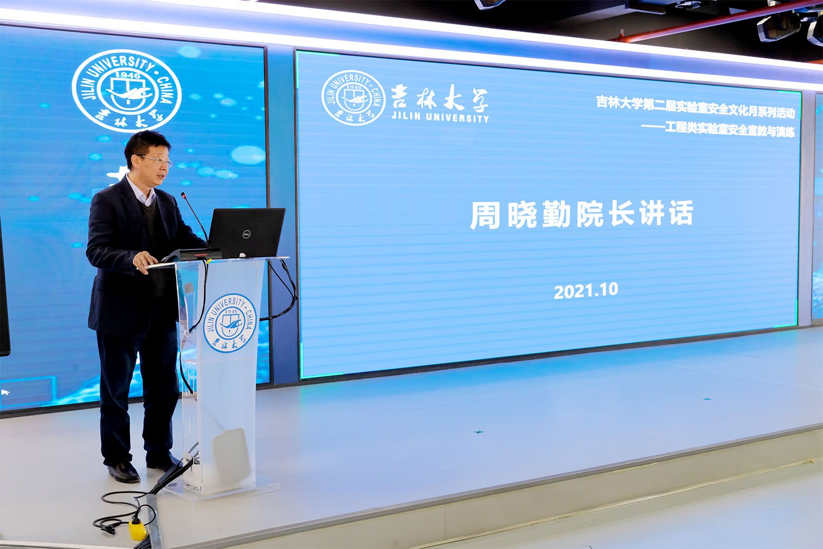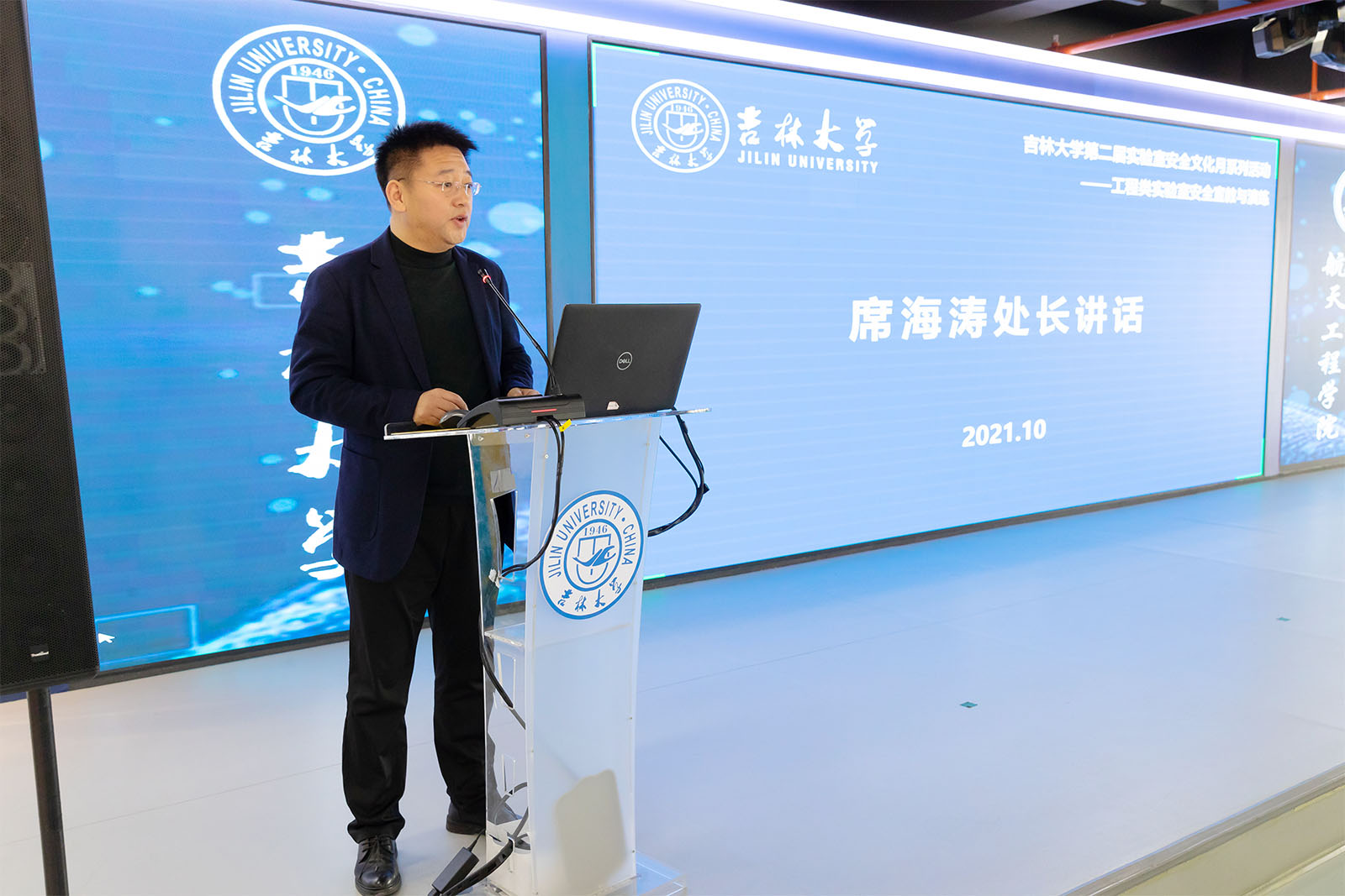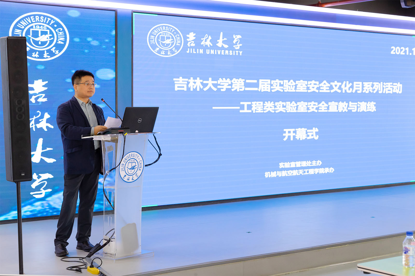 10月21日上午,由实验室管理处主办、新葡的京集团8814承办,联合工学部其他学院共同参与的吉林大学第二届实验室安全文化月系列活动——“工程类实验室安全宣教与演练”主题活动,在吉林大学东区工程训练中心路演大厅开幕。实验室管理处处长席海涛,新葡的京集团8814党委书记郑福胜、院长周晓勤,汽车工程学院、材料科学与工程学院、交通学院、生物与农业工程学院、汽车仿真与控制国家重点实验室等相关单位领导及师生代表出席了开幕式,线上线下共有500多名师生参加。开幕式由新葡的京集团8814副院长左文杰主持。