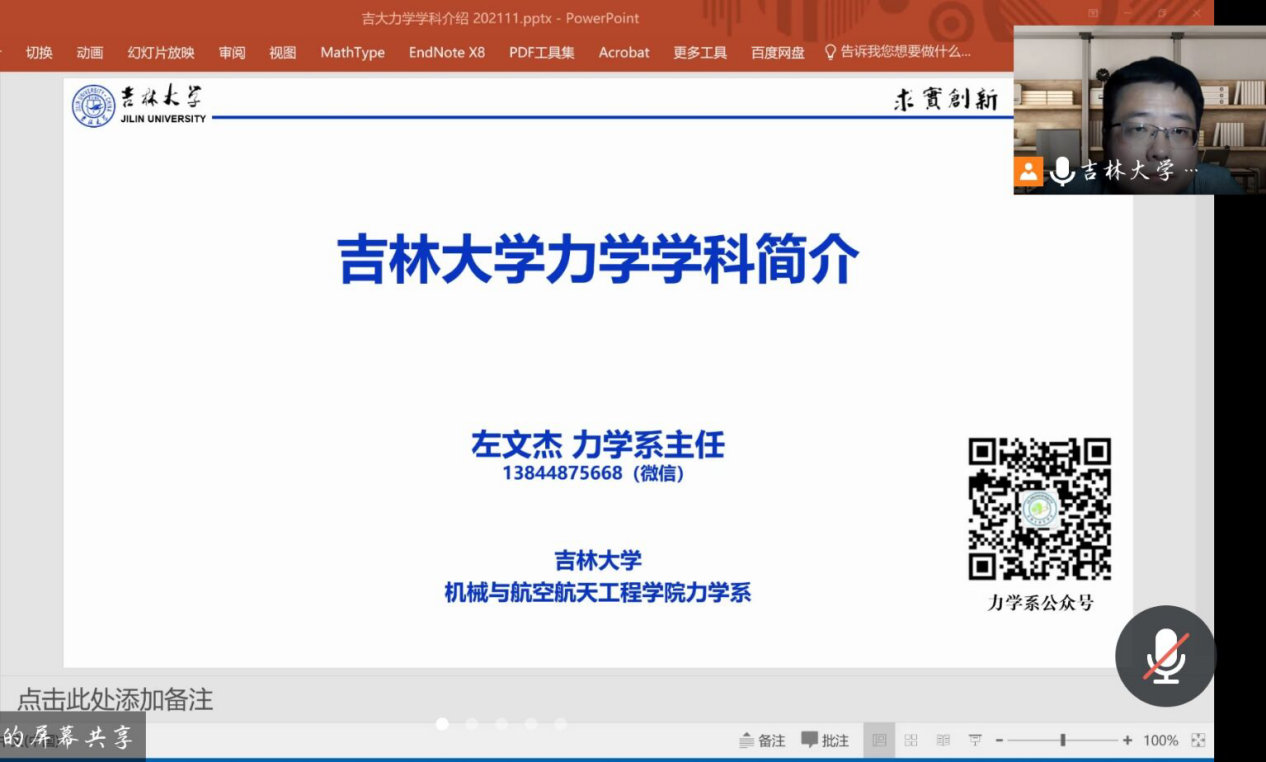 11月5日晚,左文杰教授为学生进行了力学专业和学科介绍,学院全体新生、对力学专业感兴趣的大二学生在线收看。他为学生讲述了力学学科的发展历程,阐述了力学与其他学科的关联,并通过解读我院力学专业培养方案,向同学们展现了学院独具特色的培养模式。同时,他还根据历年力学专业学生的就业数据以及行业发展现状,分析了力学专业的就业形势与发展前景。在答疑环节,同学们积极提问,踊跃参与,左文杰老师为学生耐心讲解,答疑解惑。最后,他希望同学们能牢牢把握时代机遇,打好自身基础,扎实掌握专业知识,更好地适应未来的学习及工作。