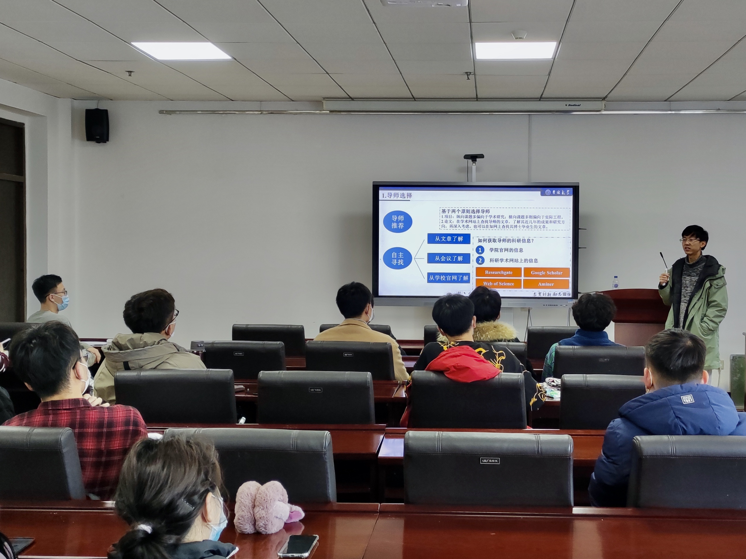 为满足我院研究生的科研诉求,帮助有读博意向的同学明晰考博流程,了解期刊选择和论文投递过程,引导其做好研究生期间规划,2021年11月12日,新葡的京集团8814在机械馆529会议室举办了第二期“科研领航”系列讲座。本次讲座邀请到19级硕士罗智友就“博士申请流程”和“论文选择与投递”两个主题进行经验分享。罗智友,2020-2021学年吉林大学研究生国家奖学金和优秀奖学金获得者,硕士期间以第一作者身份发表SCI论文5篇,现已通过清华大学材料学院博士申请考核。