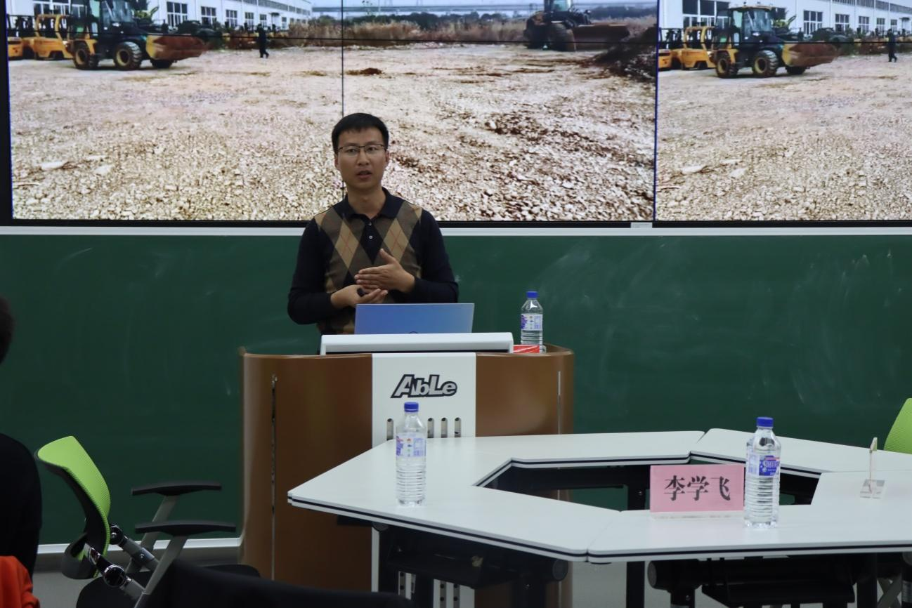 首先,李学飞老师以“人工操作装载机”为例,列举了该项工作重复性、危险性等弊端,由此引出了活动主题——工程车辆无人作业技术。他强调,工程机械在资源开采、工业生产、建设施工和抢险救灾等方面,一直发挥着重要作用。随着全球科技的发展和人工智能技术的普及,工程机械技术创新已经成为行业发展的共识,工程机械无人化的重要性愈发明显。接下来,他详细介绍了无人化工程车辆的总体设计方案以及它所需要达到的功能和要求,针对在设计过程中的难点,包括物料识别、铲掘难易程度判断、自主铲装控制、路径规划以及跟踪控制等,全面介绍了工程车辆无人作业技术。活动最后,师生进行现场互动,李学飞老师对同学们的问题耐心地讲解,解决了困惑,开阔了学生的眼界。