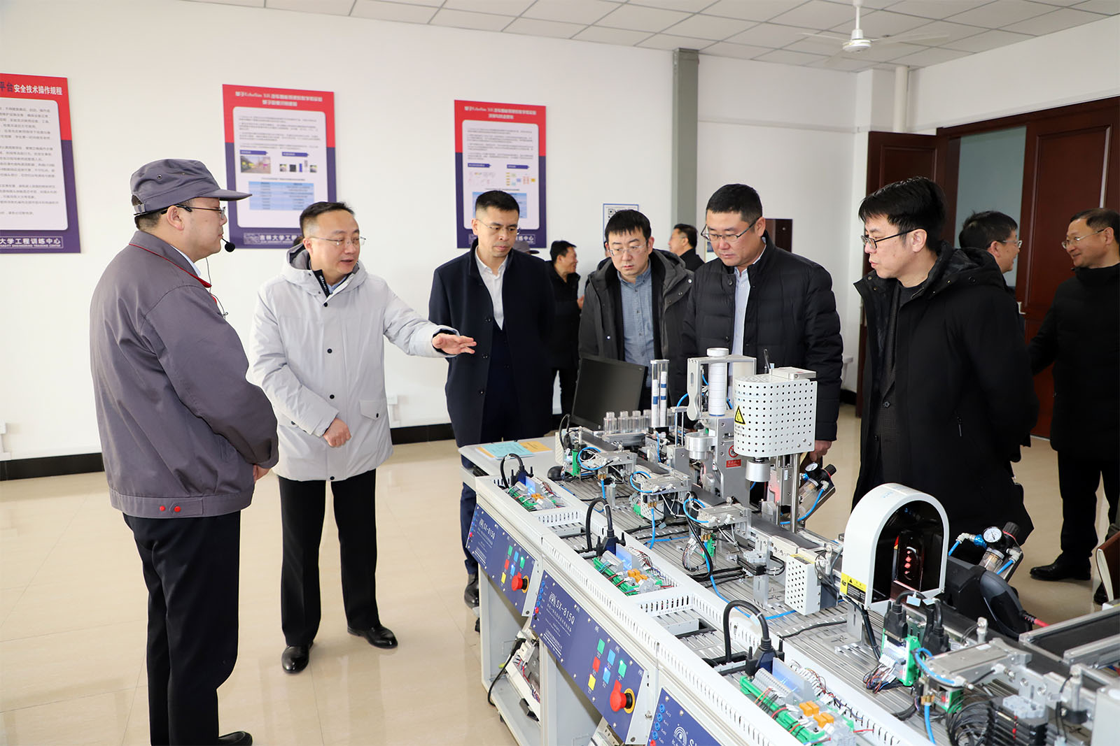 赵宏伟副校长一行在加工中心、工业机器人、智能制造、焊接、竞技机器人、机电一体化、3D打印、综合训练等实训模块进行了现场调研。