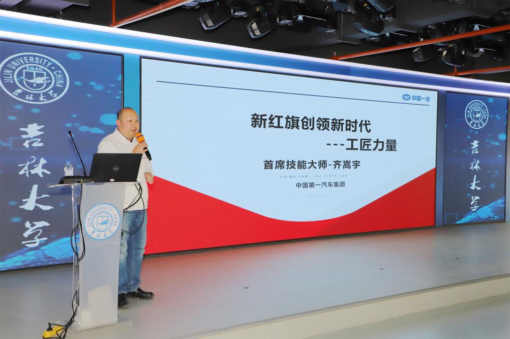 为传承和发扬工匠精神,勉励同学们精益求精、勇于创新,12月3日下午,吉林大学南岭校区第三届“汇聚工学力量·培育工匠精神”主题系列活动在工程训练中心601路演大厅举行。活动特邀全国劳模、全国五一劳动奖章获得者,中国第一汽车股份公司红旗工厂首席技能大师齐嵩宇作了题为《新红旗创领新时代——工匠力量》的报告。