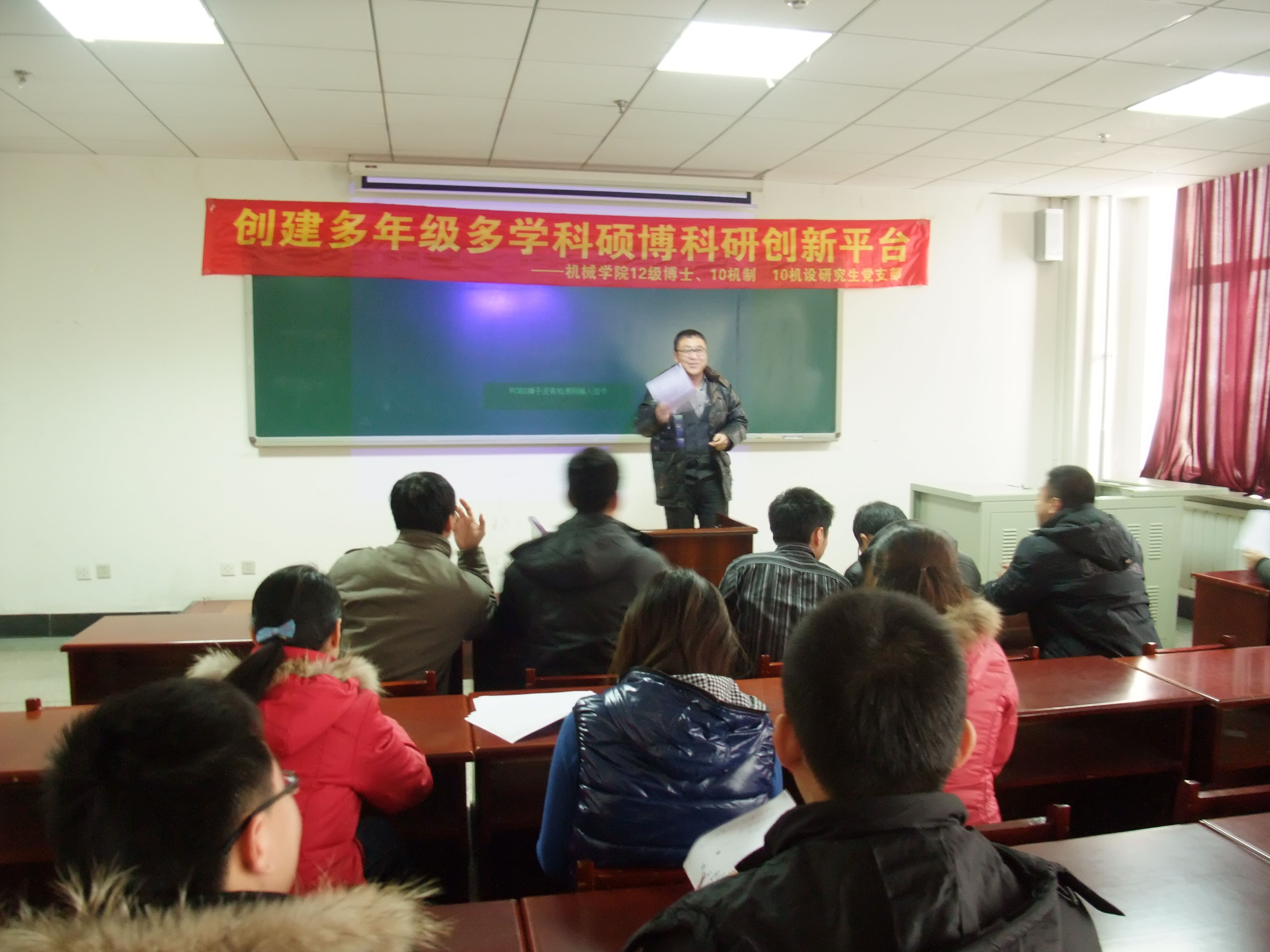 为积极响应研究生工作部组织的“研究生党支部活力创新项目”,我院12级博士班、10级机制班、10级机设班三个党支部于2012年11月7号联合举办了以“发挥博士班优势,带动硕士班,创建多年级多学科科研创新平台”为主题的党支部活动。活动开展为期一个月,本着以发挥博士班的自身优势,带动硕士班,创建务实的科研创新平台,提高各年级以及各学科同学的学术能力的目的,展开了该项目,并取得了预期的效果。