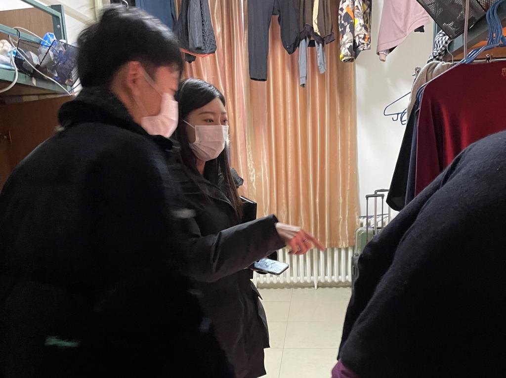 张瑛、曲艺主要围绕查寝的内容、人员分配及注意事项对同学们进行了简单的培训,并着重强调关注各寝室的用电安全情况。随即各查寝小组按照人员分配,紧抓“安全”和“卫生”两大标准,高效有序地走访查看了各寝室。在走访过程中,张瑛、曲艺带领研会干事对寝室卫生、违规电器、违规物品仔细检查、打分,并就近期生活状态、返乡离校情况和假期安排等与同学们进行了亲切的交流,温馨提醒同学们离校前注意关窗断电,注意人身及财产安全,并对大家表达了新年祝福。同学们也积极配合检查工作,悉心听取辅导员老师的建议,整个检查过程顺利和谐。
