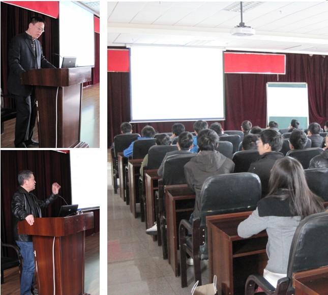 2013年4月24日下午14时,机械电子工程系在机械馆八楼会议室举行了毕业设计专题讲座。此次讲座由倪涛副主任主持,黄海东教授和宫文斌教授主讲,2009级本科生和机电系全体青年教师参加了此次讲座。