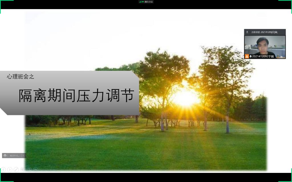 为帮助研究生关注封闭管理期间自身的情绪变化,舒缓心理压力,利用团体动力和人际支持,促进学生思想道德素质和心理健康成长,2022年3月21日—26日,在吉林大学学生心理健康指导中心的指导下,新葡的京集团8814开展了“心灵沟通”主题班会活动。本次活动由研究生辅导员曲艺老师指导、朋辈心理兼职辅导员赵蒙莉组织,21级研究生各班心理委员、班长协助开展,旨在面向21级全体研究生进行心理疏导,缓解情绪。