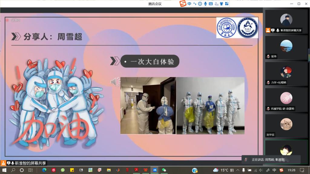 为讲好抗疫故事,弘扬抗疫精神,引导我院研究生做新时代民族精神的继承者、开拓者,培育疫情期间积极乐观的生活心态,2022年4月5日晚,新葡的京集团8814举办了“吉疫同行”抗疫故事分享会。分享会通过线上形式举办,由研究生靳淮智主持,研究生辅导员曲艺及我院部分研究生参加了本次分享会。