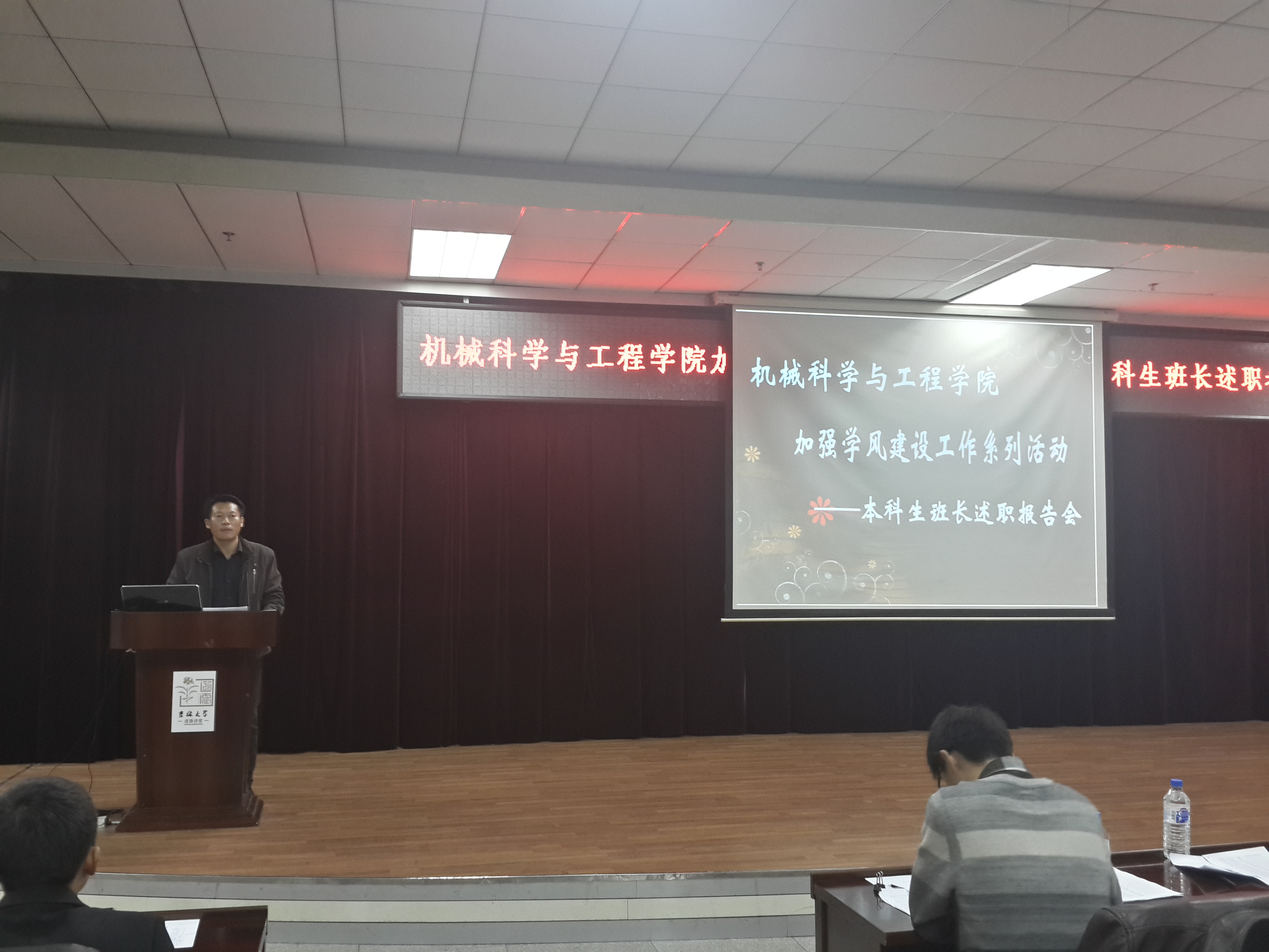 为贯彻落实《吉林大学机械科学与工程学院关于加强本科生学风建设工作相关要求》的规定,强化班长队伍建设,完善班长工作组织体系,营造优良学风,10月29日,机械学院学工办组织召开了本科生班长述职考核会,对2011级、2012级本科生各班班长进行述职考核,2013级班长参会学习。