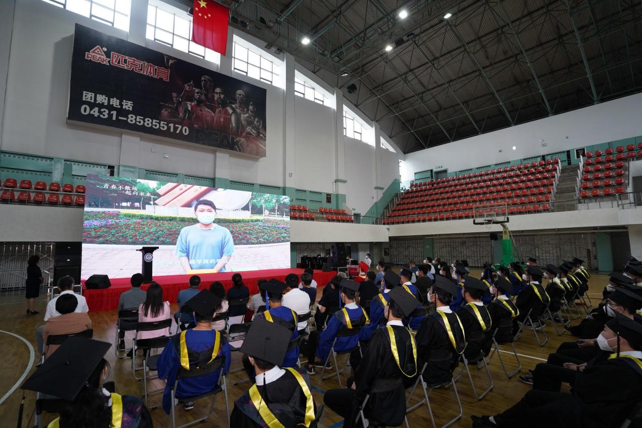 毕业本科生代表、毕业研究生代表、毕业本科生家长代表分别发言,通过视频方式,表达了对母校深情的眷恋和美好祝愿。研究生导师代表也通过视频表达了对毕业生们的嘱托和祝福。