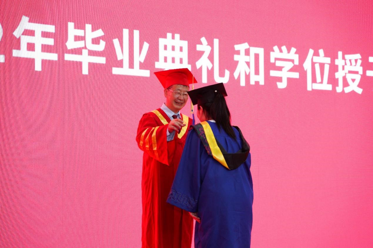 院长周晓勤教授为毕业生代表拨动流苏并颁发学位证书。