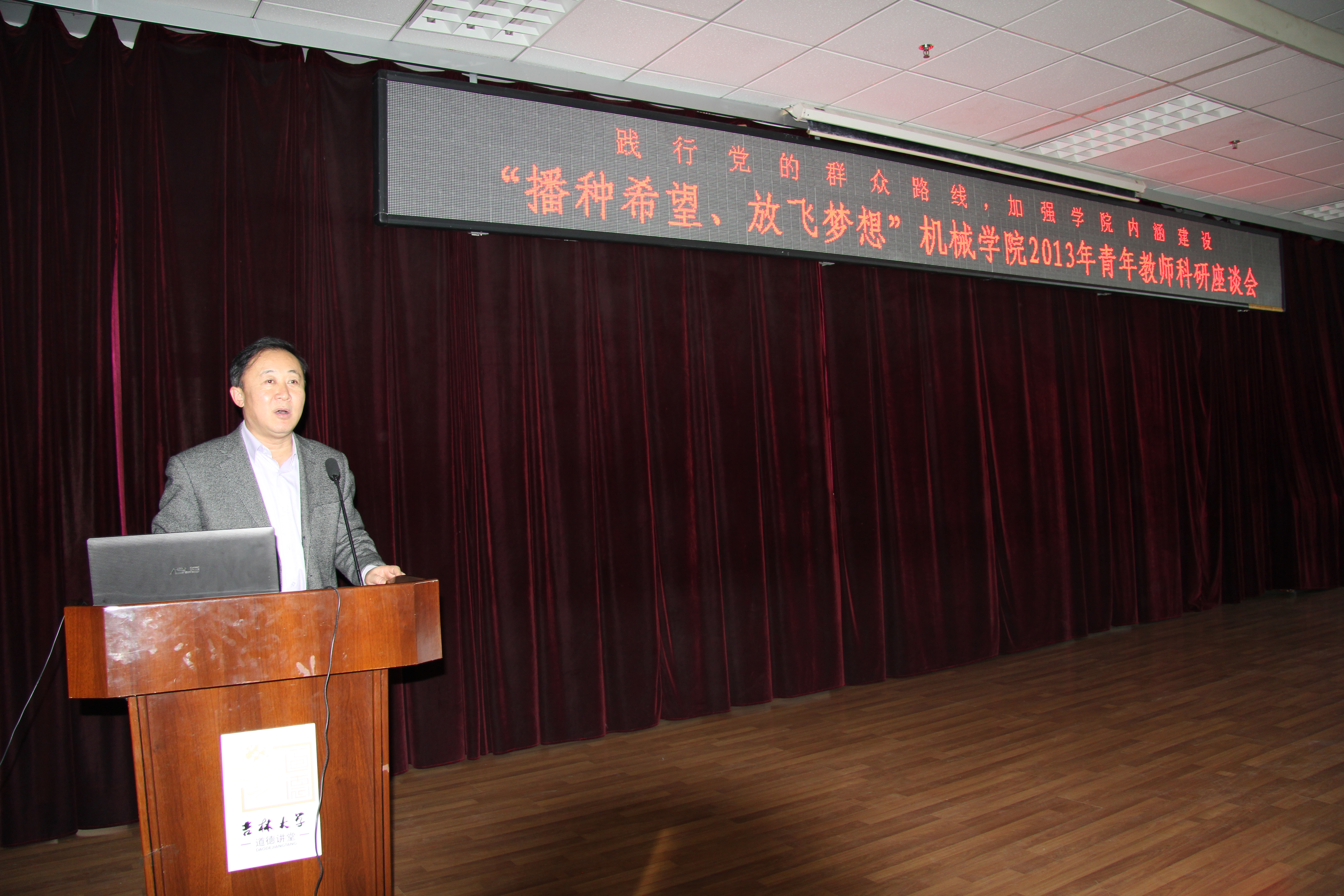 2013年11月10日下午1:30分,机械学院在南岭校区逸夫机械材料馆八楼学术报告厅举办了主题为“播种希望,放飞梦想”的青年教师科研座谈会,会议由机械学院主管科研副院长刘昕晖教授主持,机械学院院长杨兆军教授、党委书记王国强教授及院领导班子主要成员参加了此次会议,吉林大学常务副校长赵继教授在会上做了特邀报告。