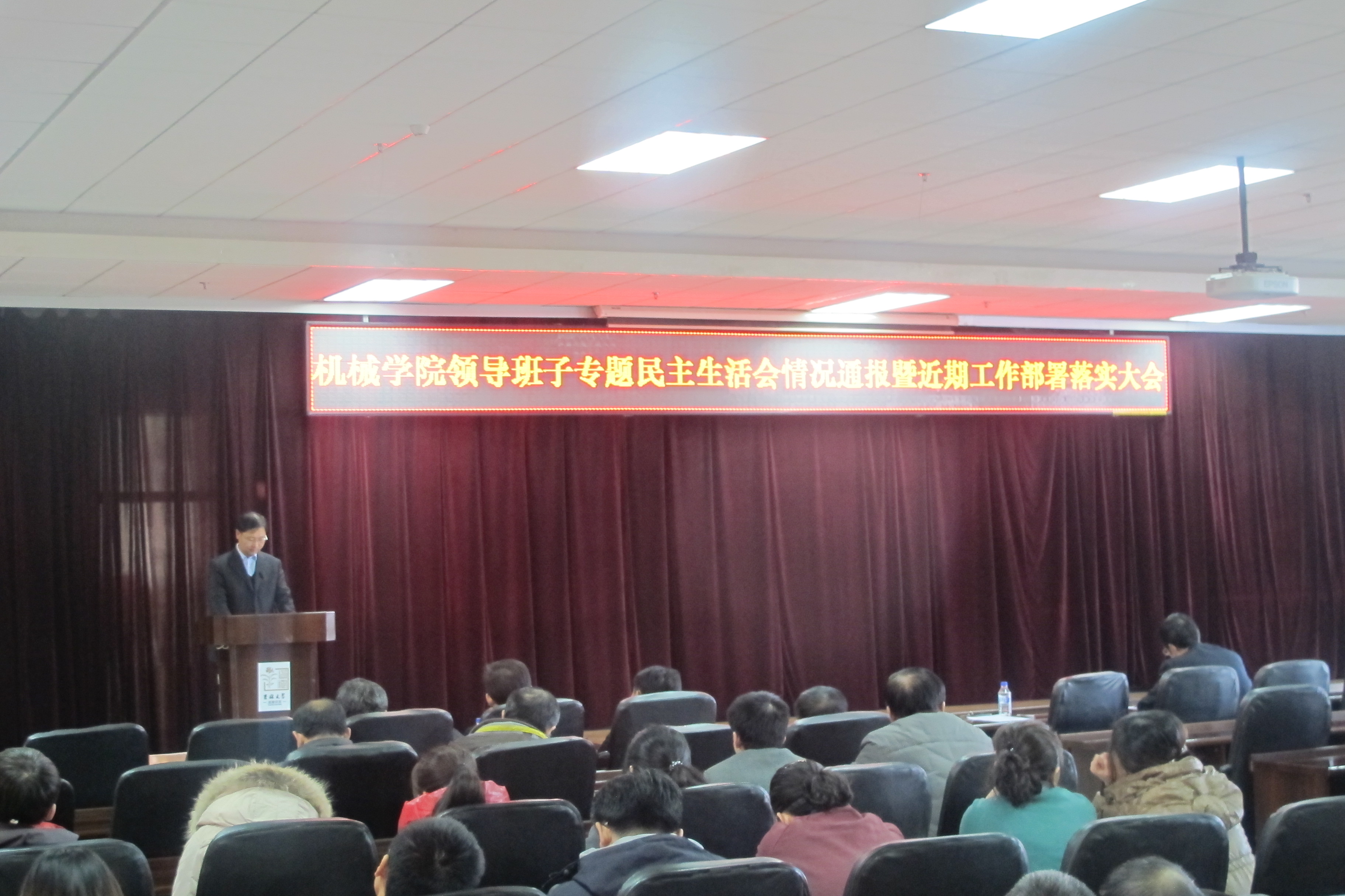 12月4日下午,机械学院党的群众路线教育实践活动领导班子专题民主生活会情况通报会在机械馆八楼报告厅召开,学校第九督导小组副组长金江红同志、机械学院领导班子成员及全体教师参会。会议由副院长黄莹同志主持。