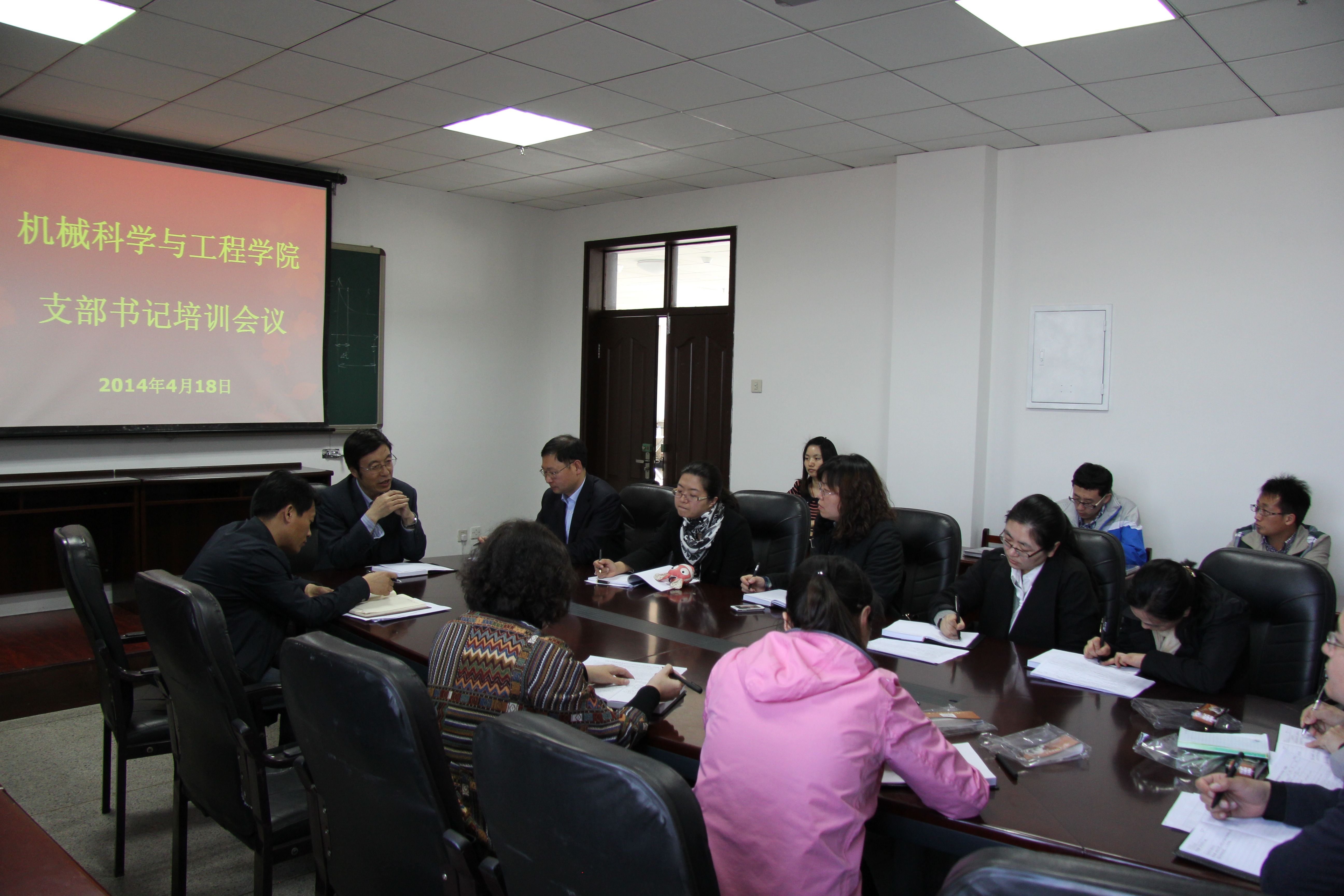 为贯彻落实《中国共产党普通高校基层组织工作条例》,进一步加强学院党建工作,全面推动学院中心工作的建设和发展,机械学院党委于4月18日下午3:00在机械馆527召开了党支部书记培训会议。会议由学院党委书记王国强同志主持。 院长杨兆军同志结合自己的工作经历,向参加培训的人员阐述了作为一名党支部书记应具备的素质,并总结了二十个字来勉励新任支部书记——志存高远、诚实守信、公正严明、率先垂范、勤奋敬业,为他们指明了未来的工作路线。在新形势、新任务下,学院党委副书记兼副院长郑福胜同志对党支部书记的职责进行了明确解释,并强调,党支部书记是支部委员会的主要负责人,要贯彻好、落实好上级党组织的工作,抓好党员教育,开展好支部活动,将工作规范化、制度化、有序化。最后,学院党委书记王国强同志对党支部书记提出了明确要求:充分认识高校党支部的重要地位和作用,政治坚定,勤奋学习,明确思路,无私奉献,廉洁自律。利用自身表率作用和人格魅力去感染人、教育人、引导人,让组织放心,让师生员工满意。