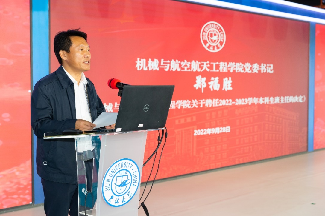 会上,院党委书记郑福胜宣读《新葡的京集团8814关于聘任2022-2023学年本科生班主任的决定》,学生心理健康指导中心副主任朱丽雅为新聘班主任代表颁发聘书,党委学生工作部副部长梅士伟为优秀班主任代表颁发证书及奖品。