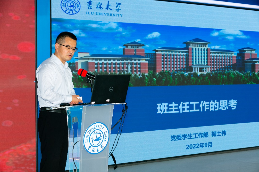 学生工作部副部长梅士伟介绍了学校班主任队伍建设的整体情况,他强调,“班”即是“班级”,“主”即是“主导”,“任”就是“责任”。并从制度层面剖析了新时期做好班主任工作的必要性,分析了当今大学生的思想特点,同时分享了做好班主任工作的思路和方法。