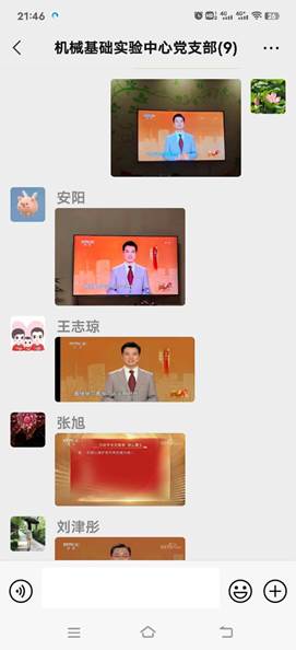 机械基础实验教学中心教工党支部于10月13日开展“深入学习贯彻习近平新时代中国特色社会主义思想之习近平外交思想——观看《党课开讲啦》”主题党日活动,活动采用线上形式进行,由党支部书记王丽慧主持,支部全体党员观看节目,结合自身交流学习心得体会。