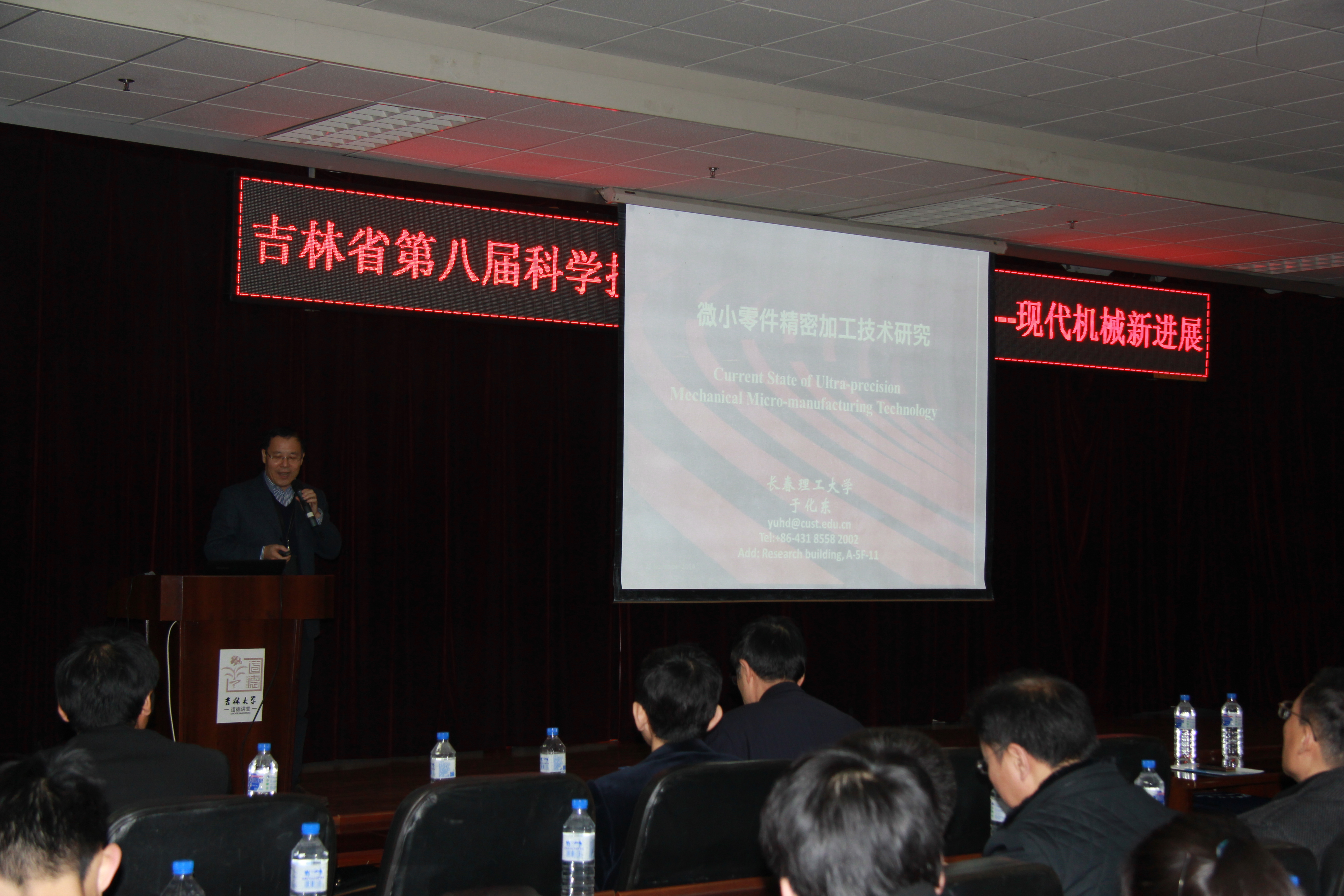 论坛分别邀请到了长春理工大学校长于化东教授做了题为“微小零件超精密制造”的学术报告;吉林大学机械科学与工程学院院长杨兆军教授做了题为“机电装备可靠性技术”的学术报告;吉林大学汽车工程学院院长宋传学教授做了题为“现代汽车新技术”的学术报告;吉林大学通信工程学院、吉林大学唐敖庆特聘教授陈虹教授做了题为“基于模型的汽车控制系统设计”的学术报告;中国科学院长春光学精密机械与物理研究所新技术研究室主任贾宏光研究员做了题为“民用无人机系统关键技术”的学术报告;一汽技术中心工艺部郑文涛工程师做了题为“圆柱齿轮剃齿仿真与应用”的学术报告。