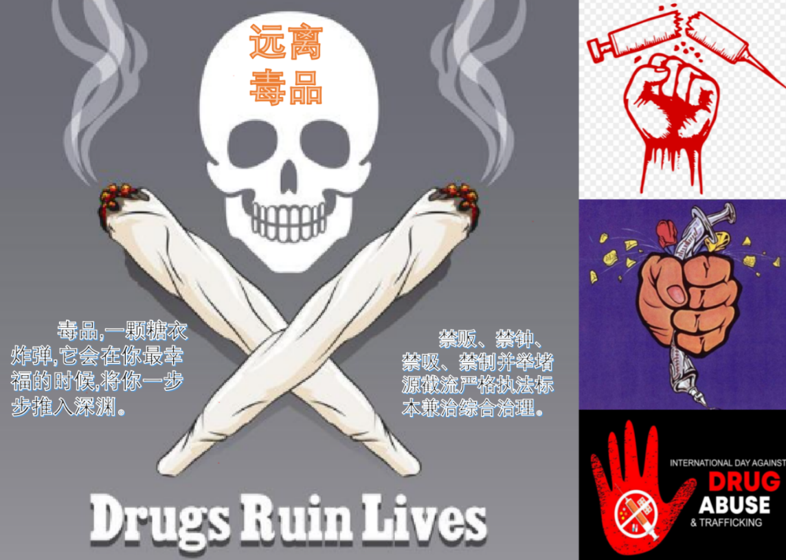 本次活动面向全体在籍研究生,经过学院研究生工作办公室筛选,以下作品脱颖而出。王宙同学创作的禁毒文字创意作品《镜子》,一面“毒”镜,分割左右,半是枯骨累累,半是人生黯淡,给观者深刻印象,呼吁一起为爱守护。孙浩洋同学创作的禁毒海报《远离毒品利国利民》,作品丰富的文字和图形元素给人极大的视觉冲击力,号召从个人禁贩、禁种、禁吸,到监管多措并举堵源截流,严格执法,标本兼治,综合治理。李俊颉等同学自导自演的vlog,在短短几分钟的故事里,揭露了贩毒分子对金钱毫无底线的追求,入骨刻画了不慎走上吸毒路对人生全方位的伤害,坚信犯罪分子必将被绳之以法,告诫大家:毒品害人又害己,防人之心不可无,新奇东西谨慎碰。