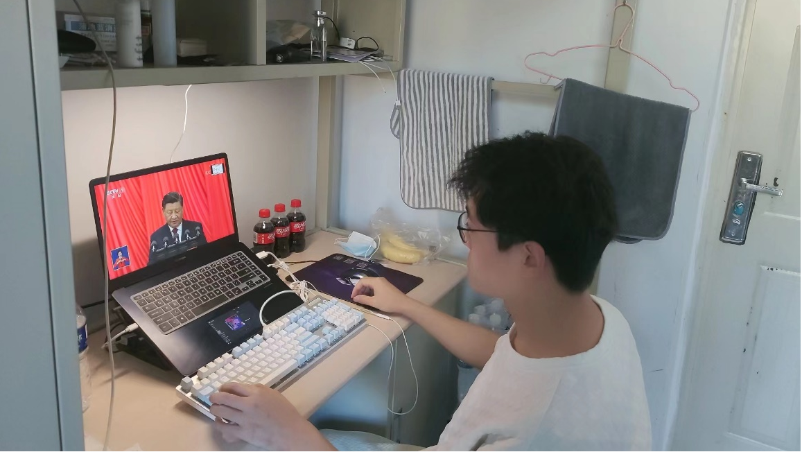 会议伊始,张瑛向22级研究生新生简要介绍了本次活动的目的,并通过一段视频带领同学们回顾了党的二十大召开情况。根据党的二十大报告内容,鼓励同学们守正创新、自立自强、踔厉奋发、勇毅前行。接着由同学们自由观看党的二十大报告视频直播内容,观看过程中,同学们备受鼓舞,纷纷表示,新时代要有新作为、新贡献,在新征程的康庄大道上,将牢记习近平总书记的殷切嘱托,立志民族复兴,不负韶华、不负时代、不负人民,在青春的赛道上奋力奔跑,争取跑出当代青年的最好成绩。也有研究生发出感慨:通过深入贯彻学习党的二十大精神,深切地激发了自己的家国情怀和社会责任感,认识到每个人与国家都密不可分。作为一名青年党员,将坚持以习近平新时代中国特色社会主义思想武装头脑,指导实践,谨记习近平总书记在各种场合的的殷殷嘱托,深深镌入骨髓和血液。